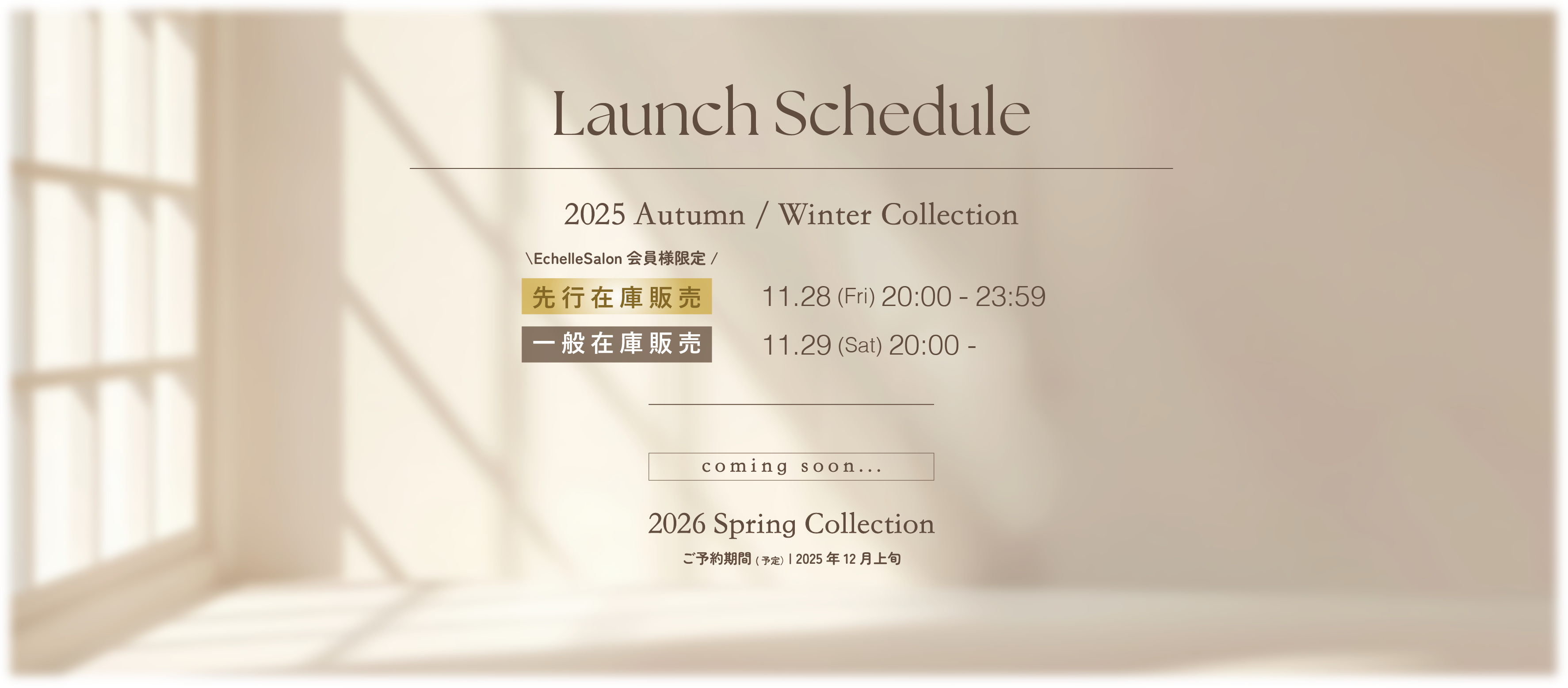 皆さまから大変ご好評いただいております、2025 Autumn / Winter Collection アイテムの発売が開始されます。