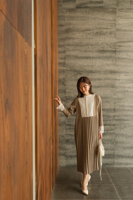 レースドッキングプリーツワンピース【リサイクルポリエステル】