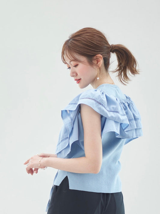 Sold Outハシゴレースビッグカラーペプラムブラウス