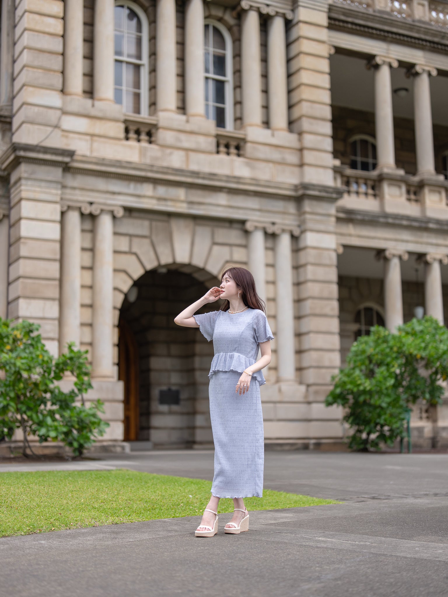 【追加ご予約|7月末頃お届け予定】エアリーシャーリングペプラムトップス|SMOKYBLUE