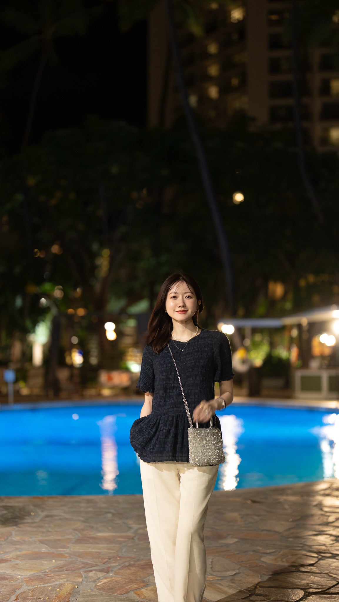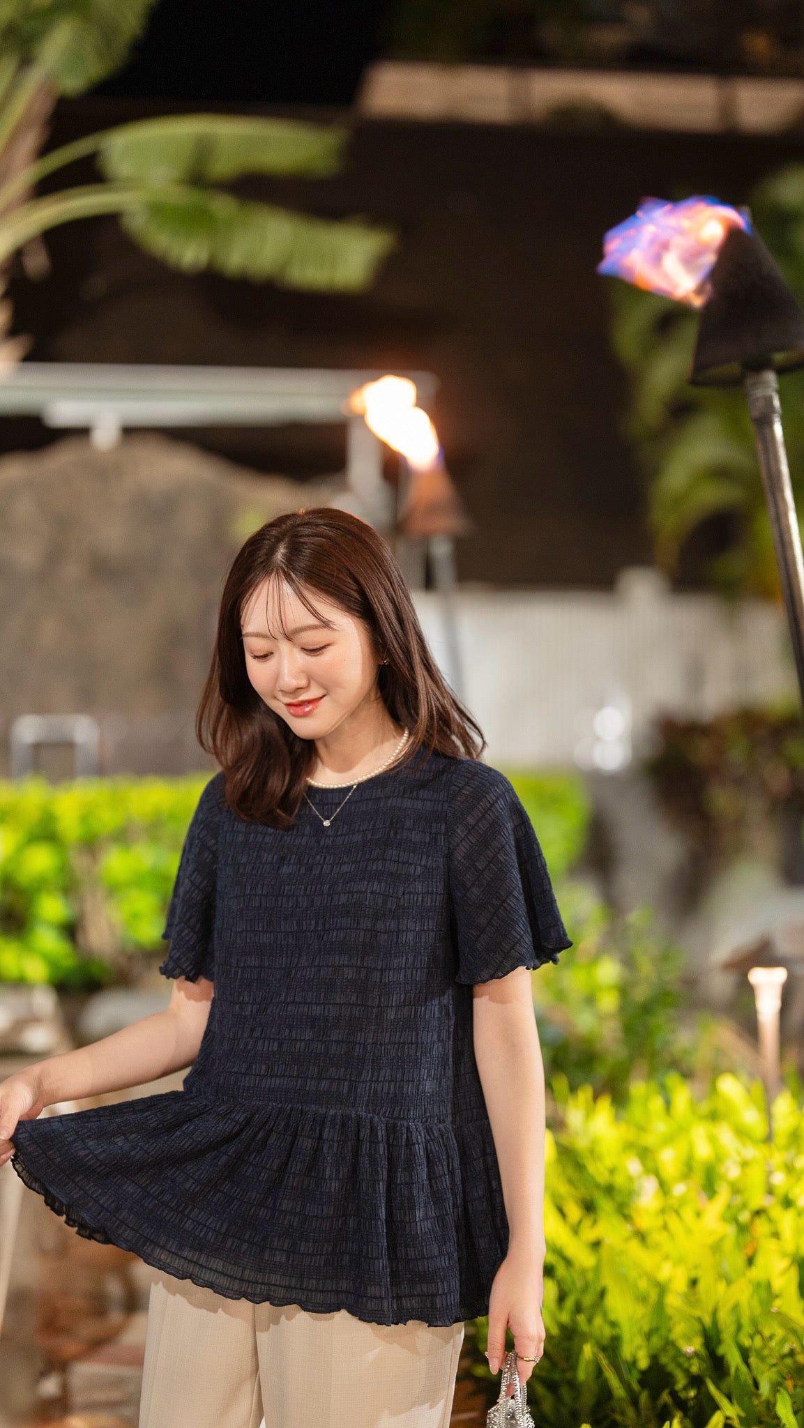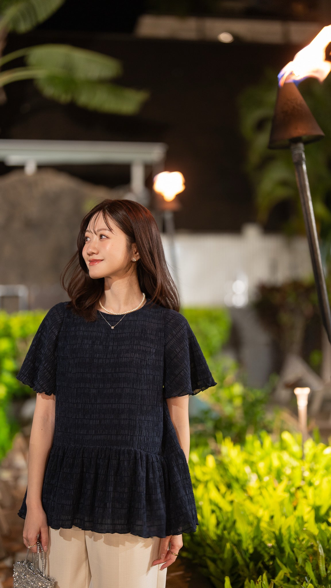 ウエスト位置のペプラムデザインがシルエットにメリハリを生み、細身からワイドまで、どんなパンツともバランスよく合わせていただけます。