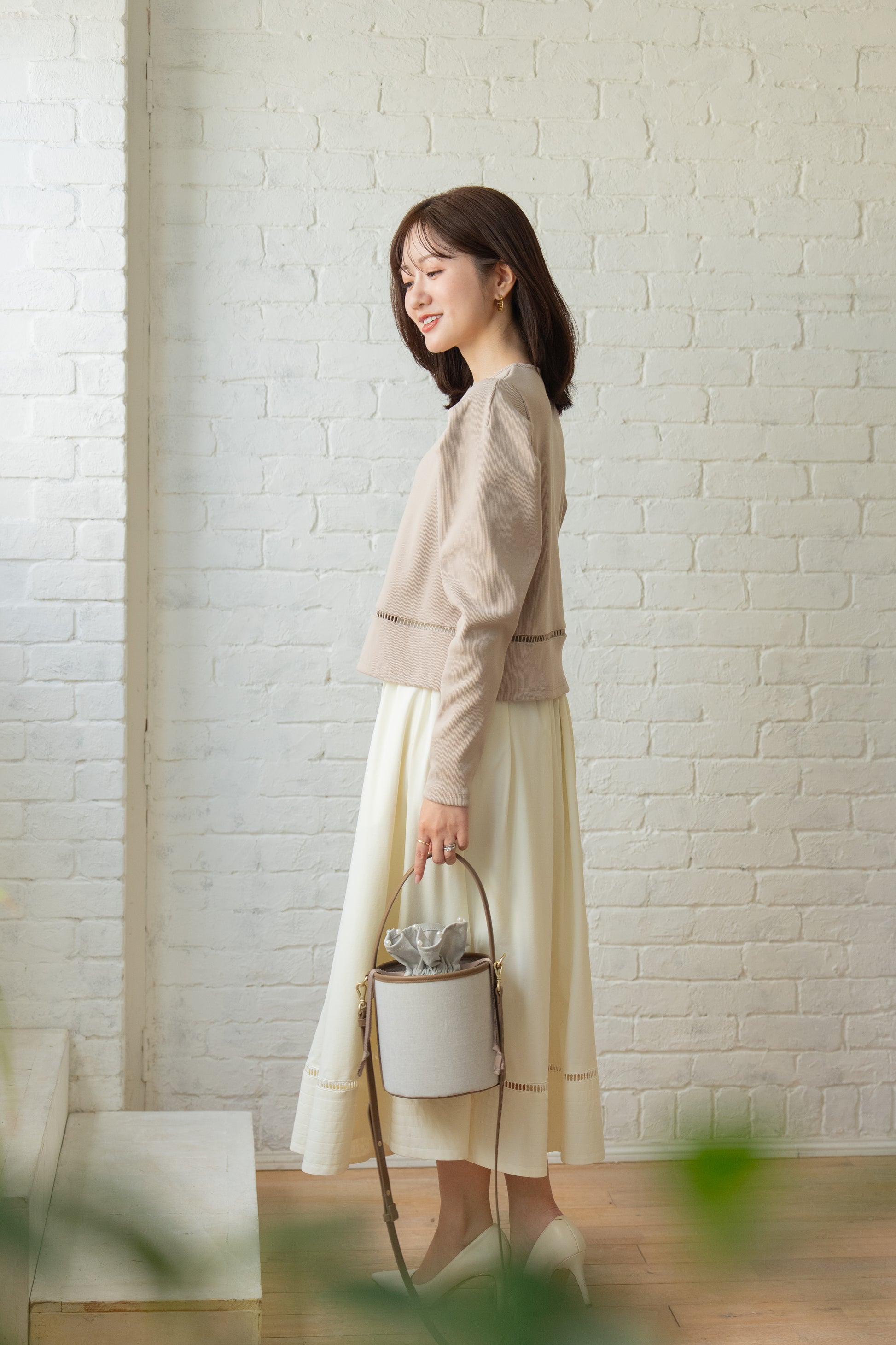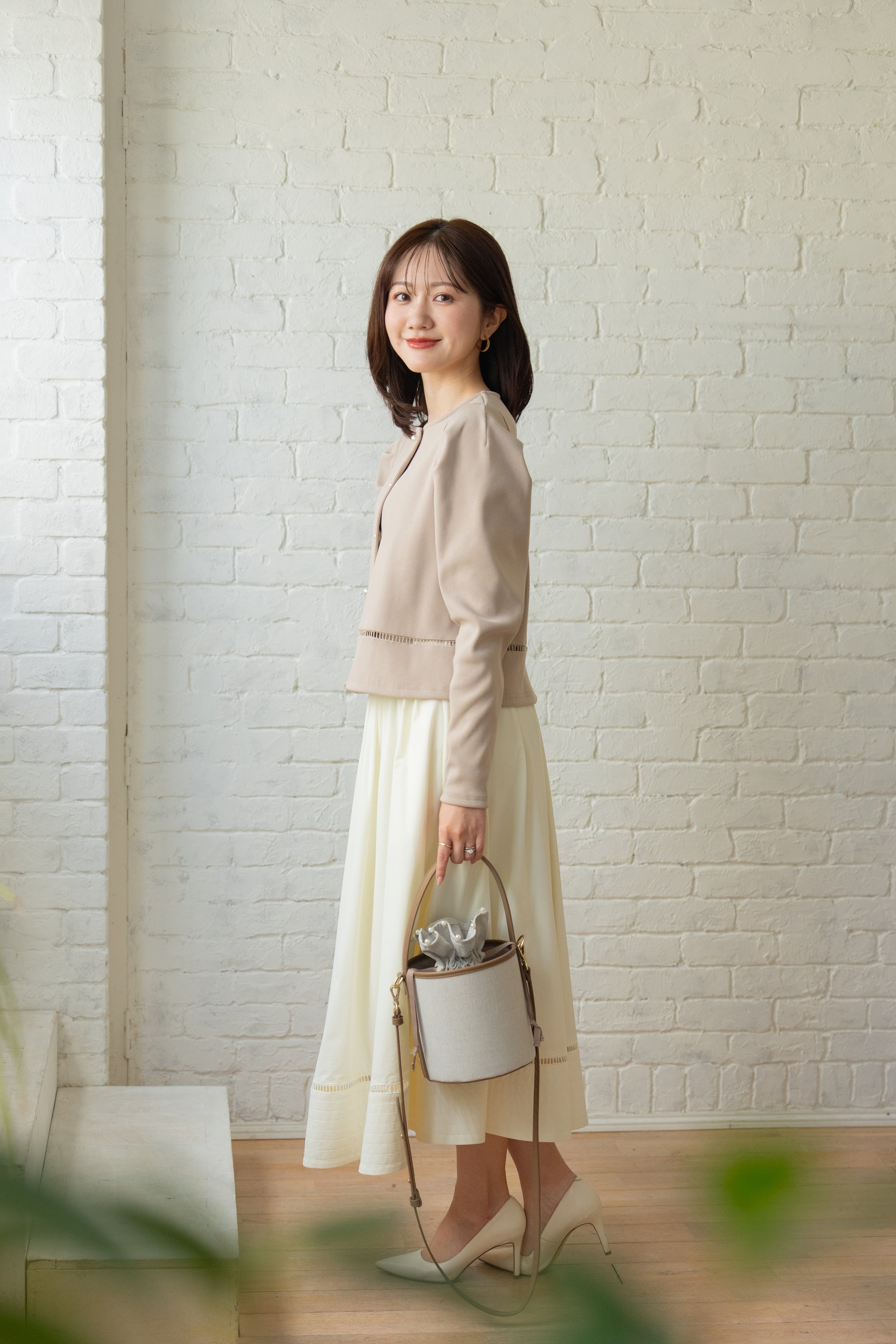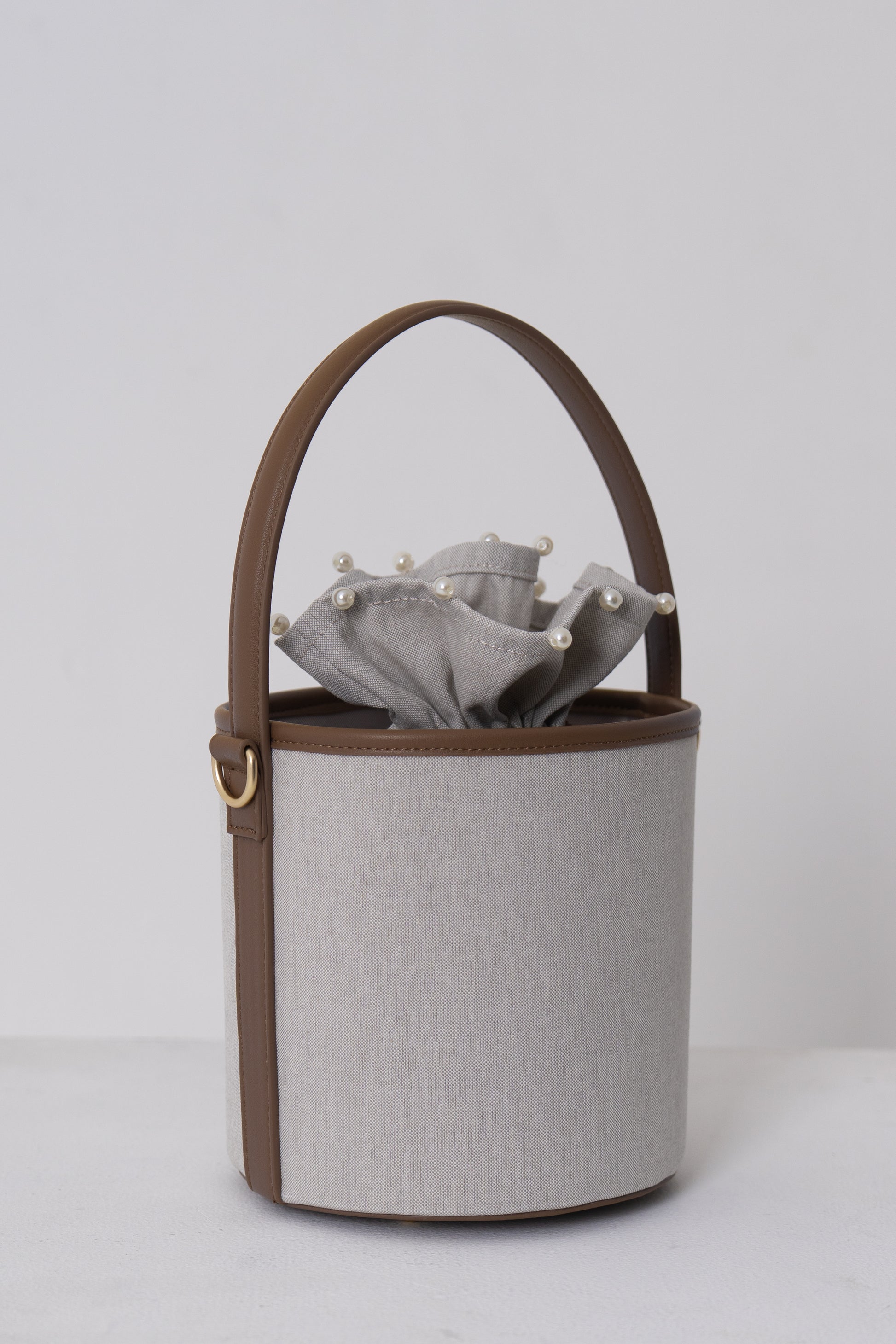 丸みのあるコロンとしたフォルムが愛らしいバケツバッグ。