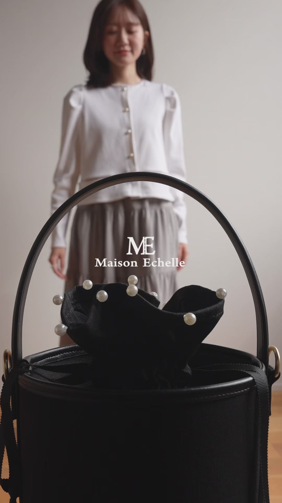 丸みのあるコロンとしたフォルムが愛らしいバケツバッグ。