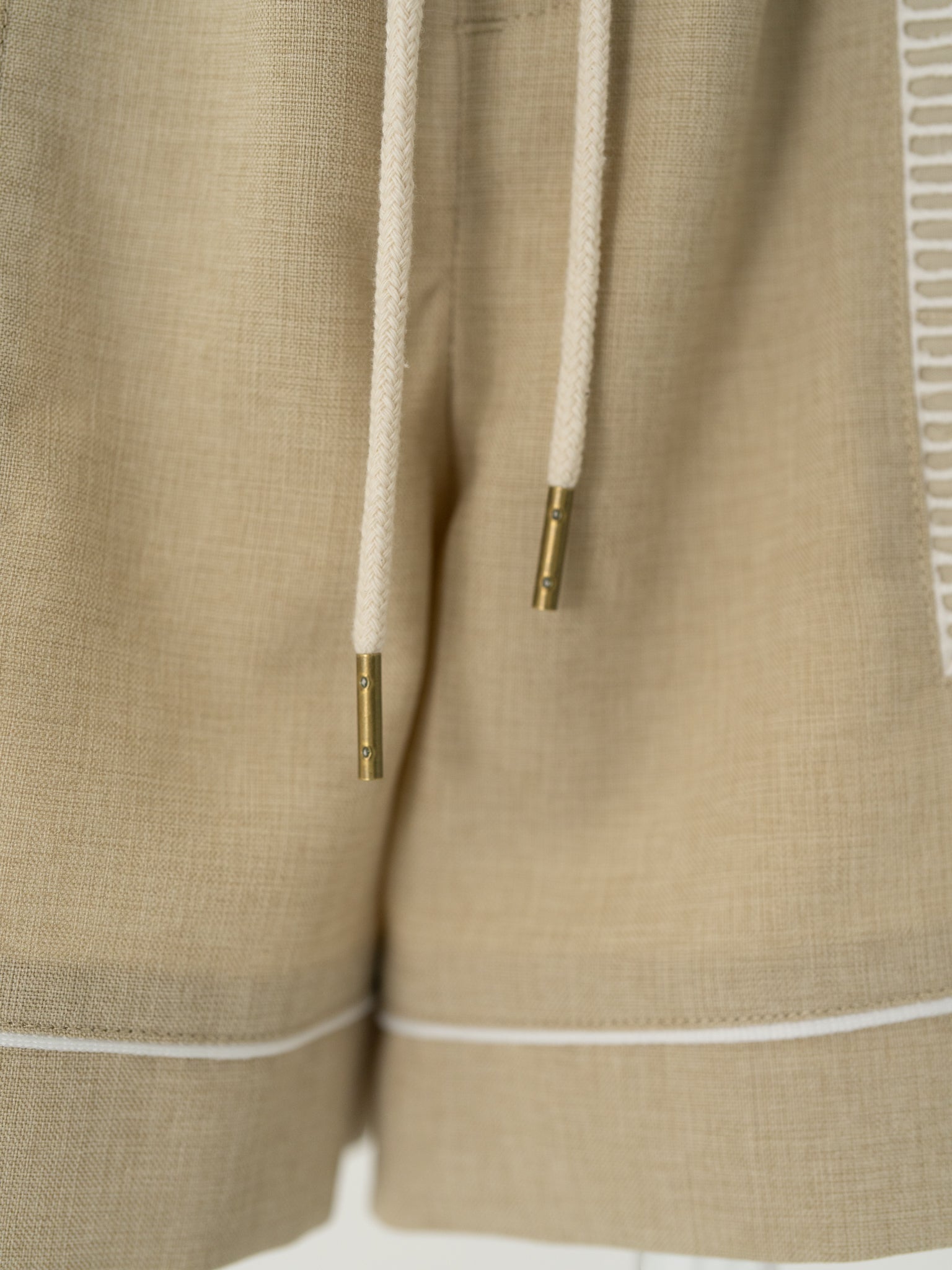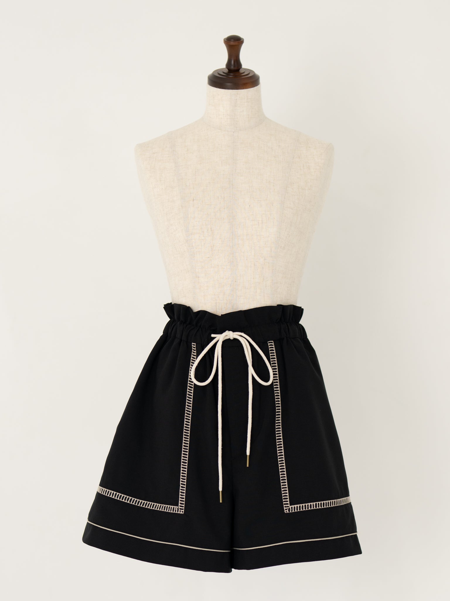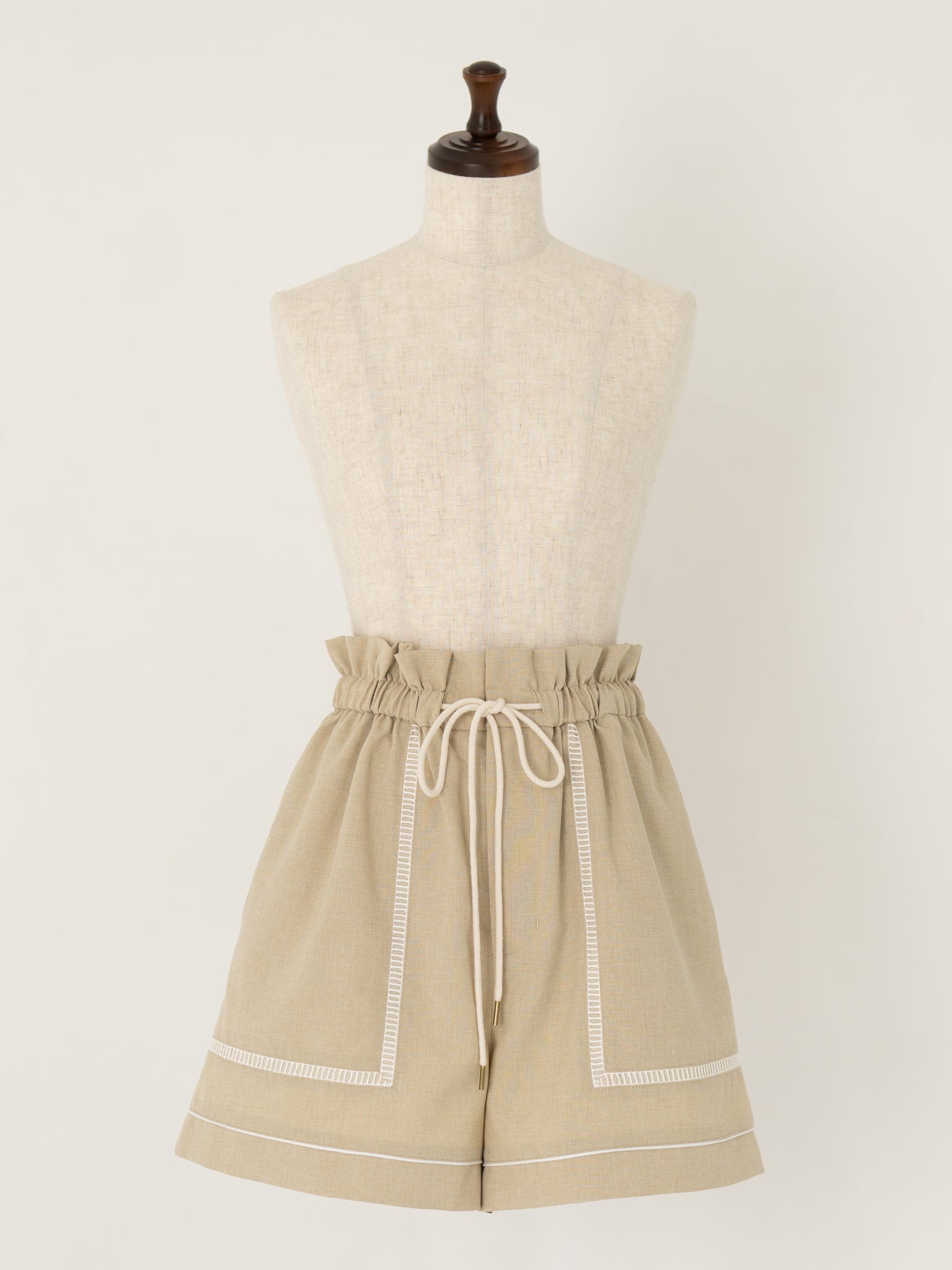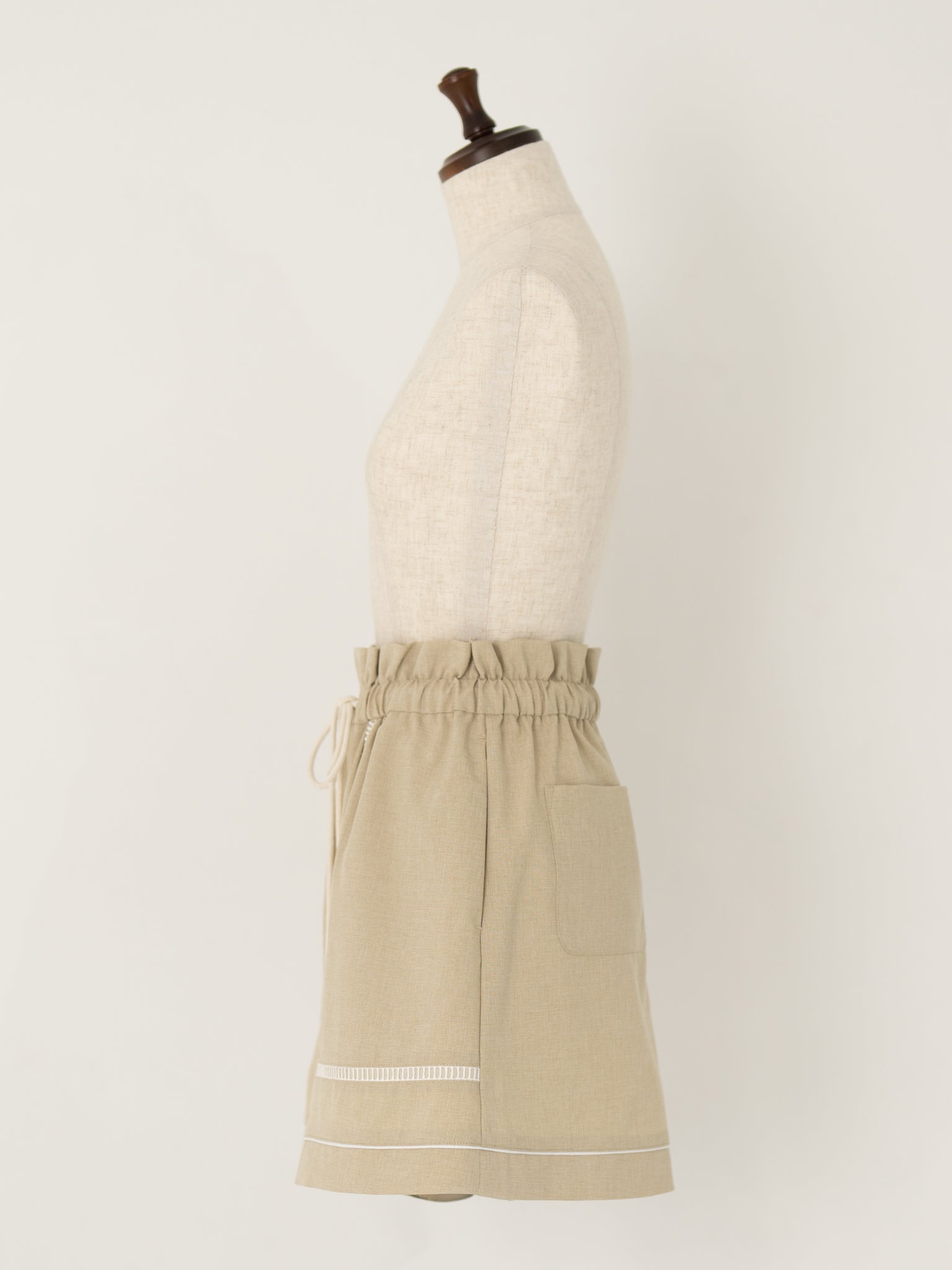 ウエストのドローストリングにはロープを使用し、マリンテイストを感じさせながらも、大人のスタイリングになじむディテールに仕上げました。