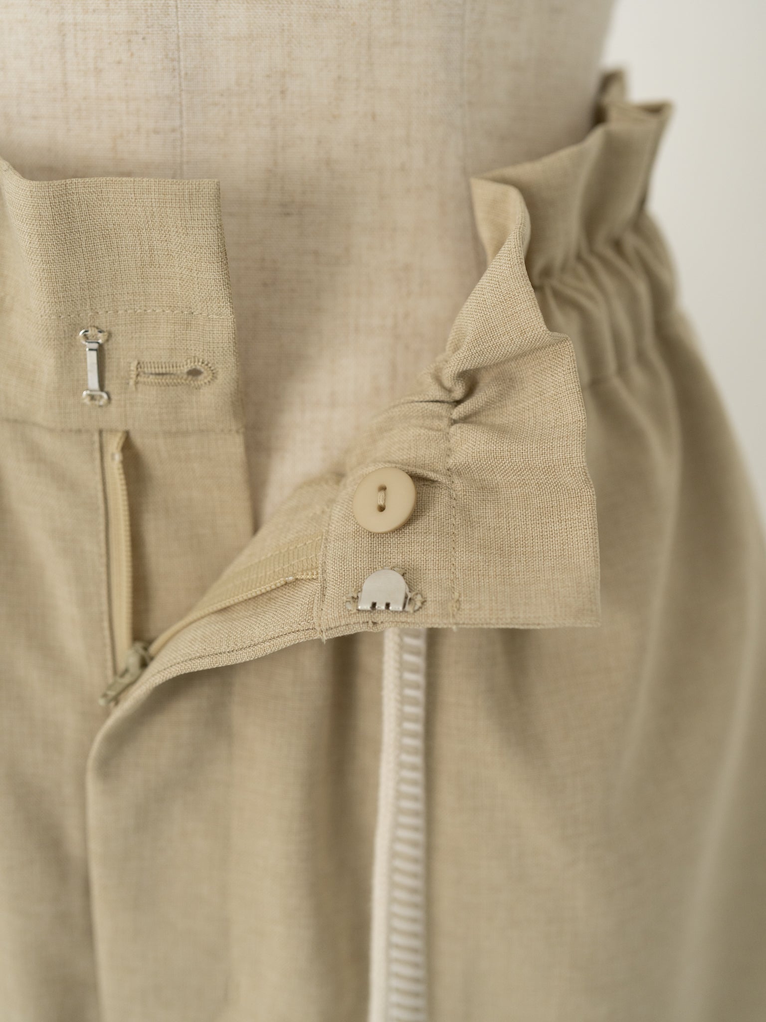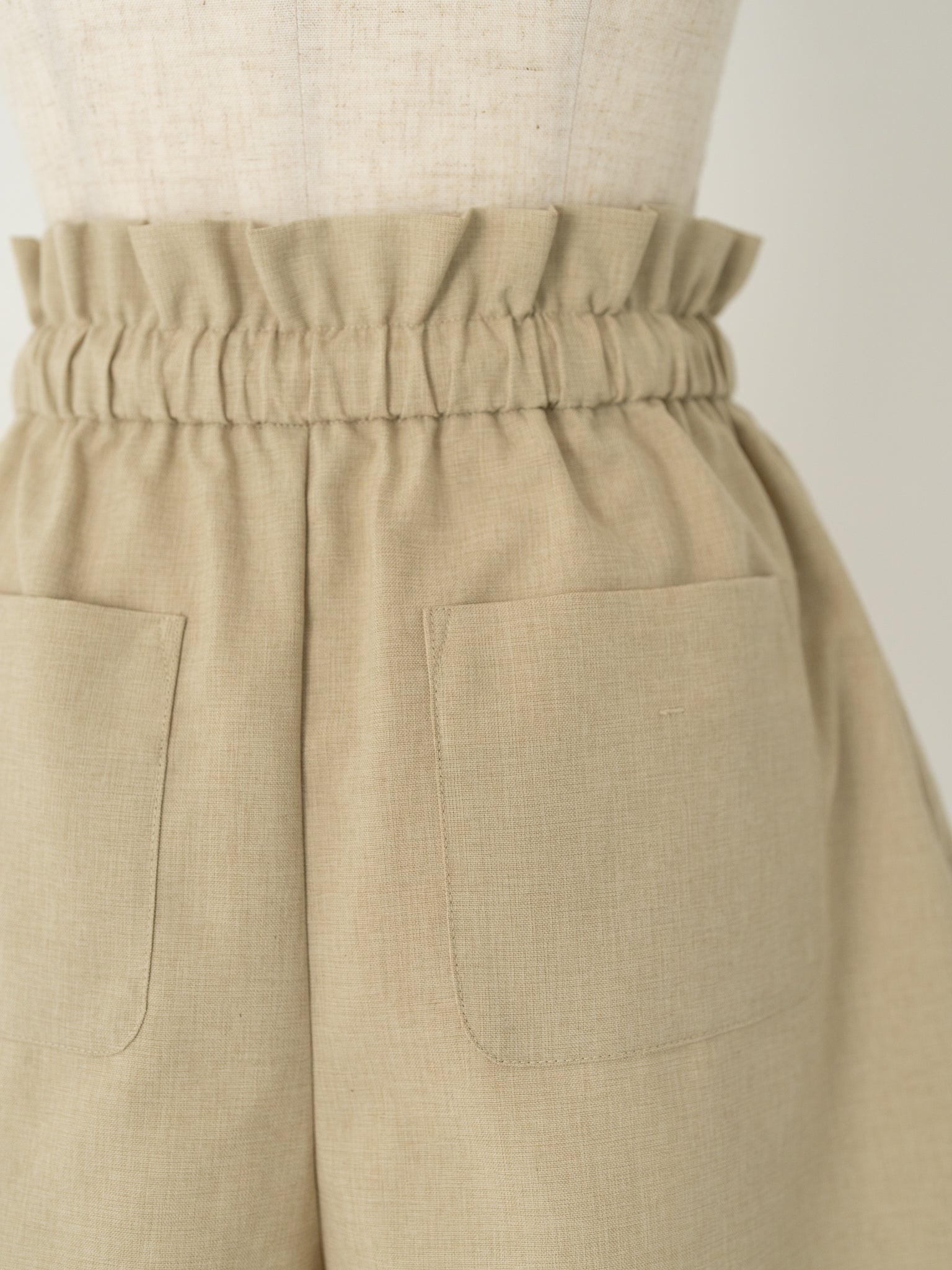 リネンのような風合いを持つリネンライク素材のリサイクルポリエステルを使用し、軽やかで扱いやすい着心地に仕上げました。