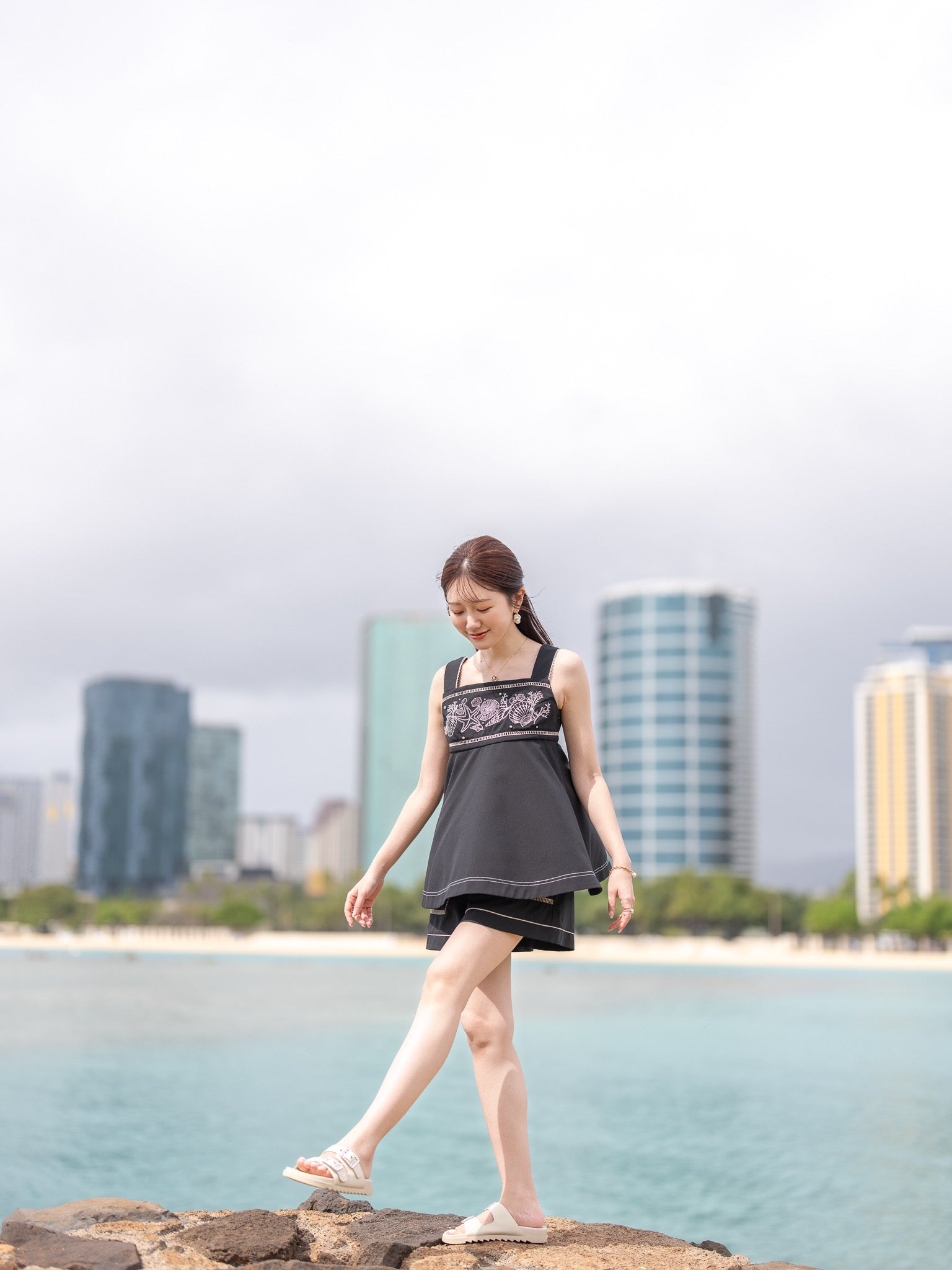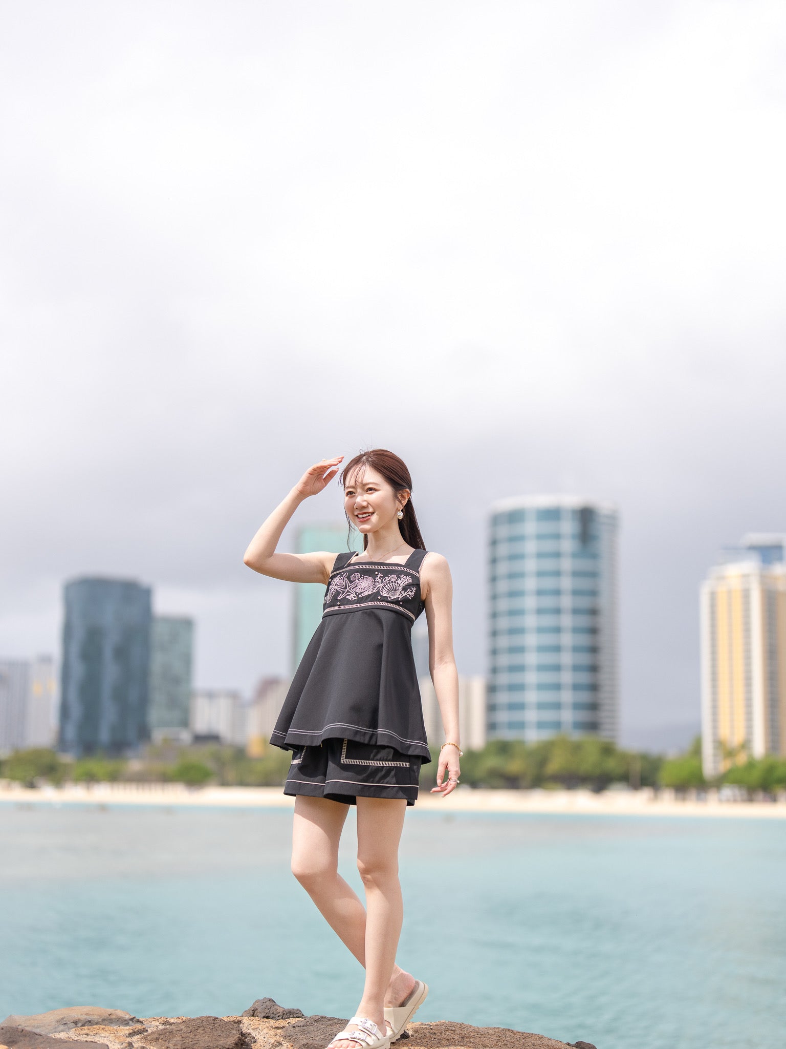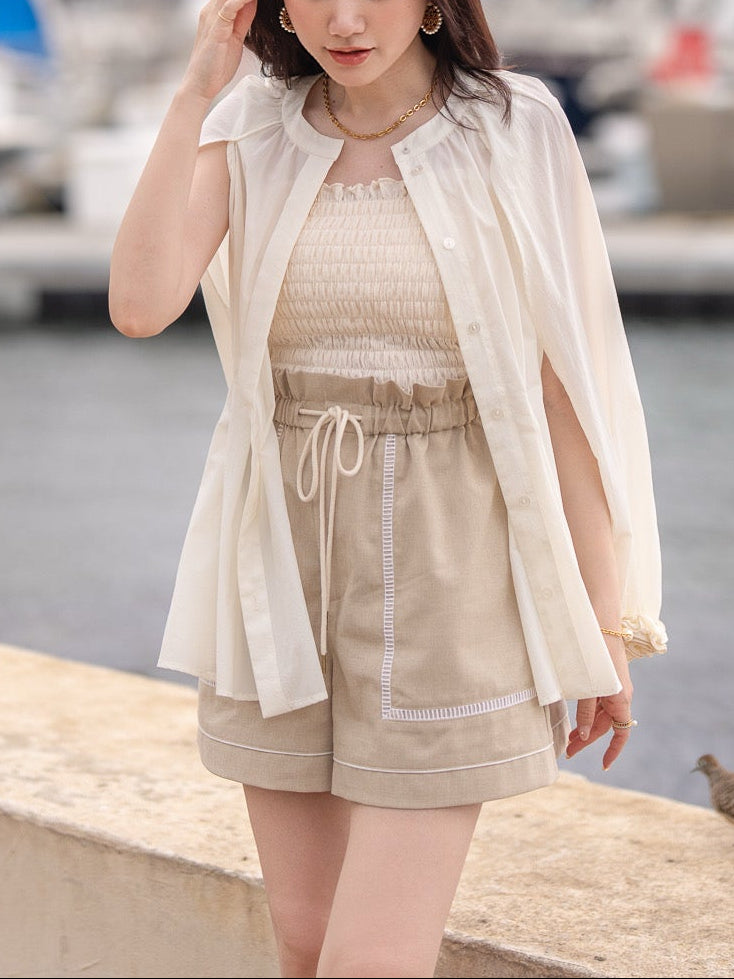 リゾートシーンはもちろん、日常のお出かけにも取り入れやすい、大人のためのショートパンツです。