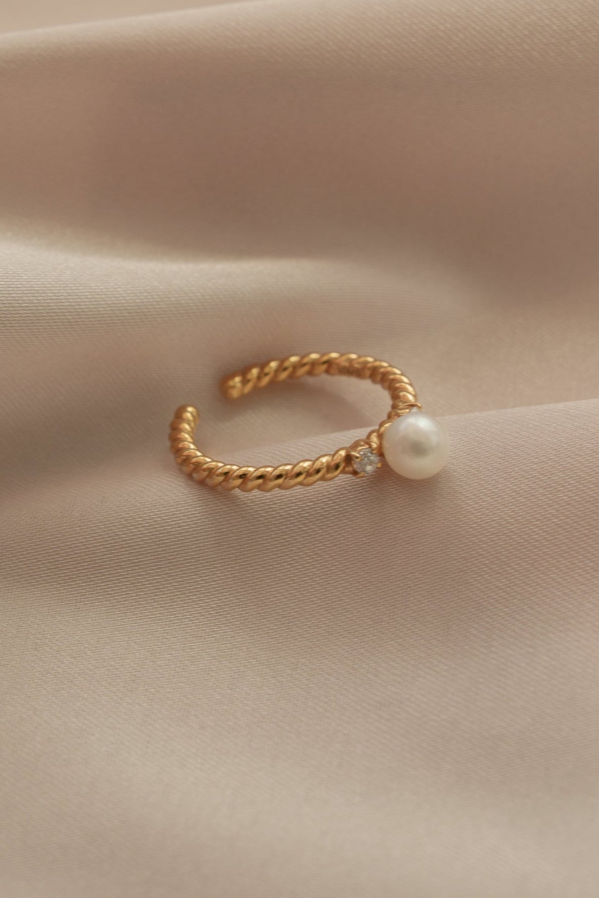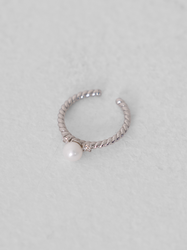 エレガントな印象のパールをツイストコードと掛け合わせ、カジュアルな装いとも馴染みやすいデザインに昇華。