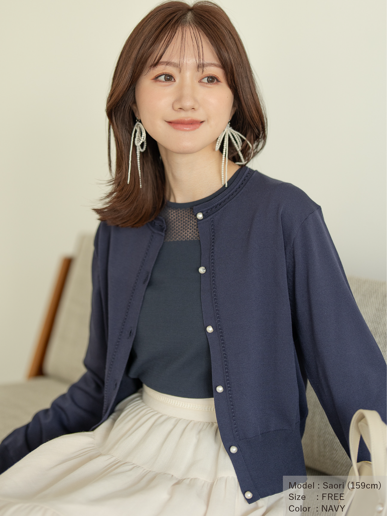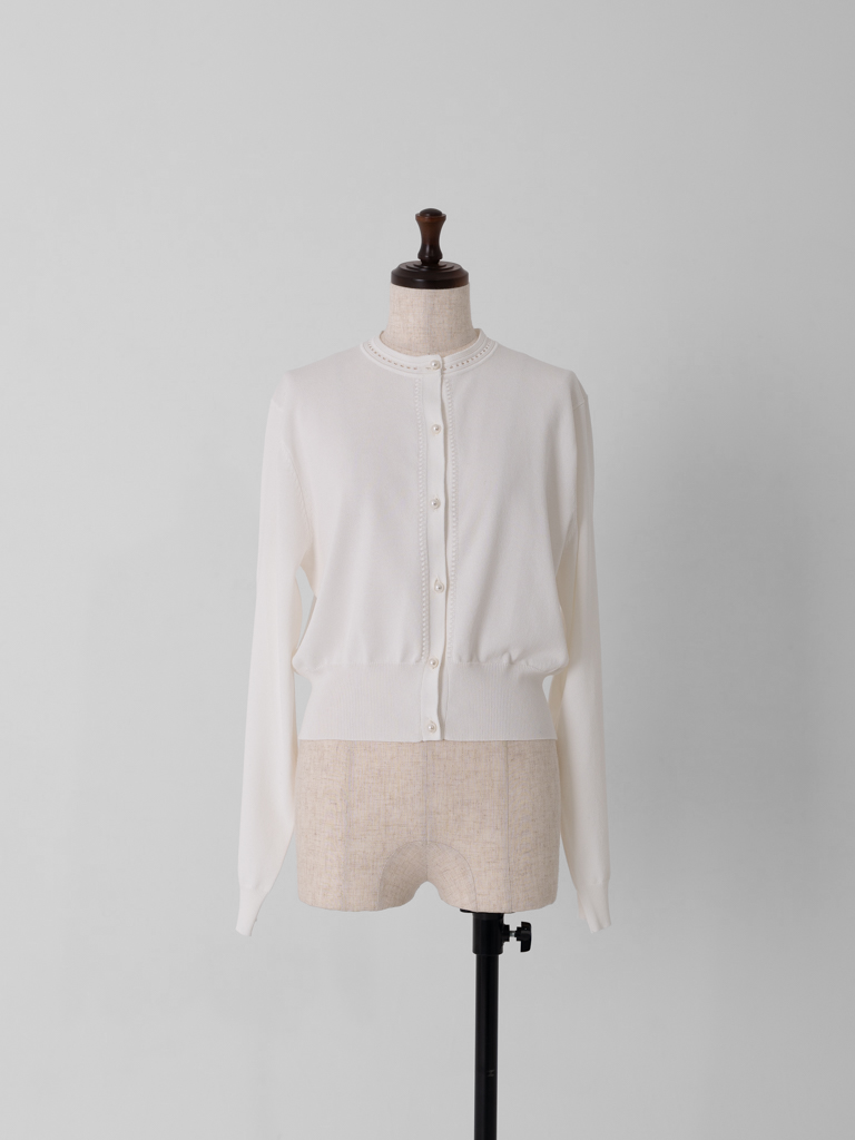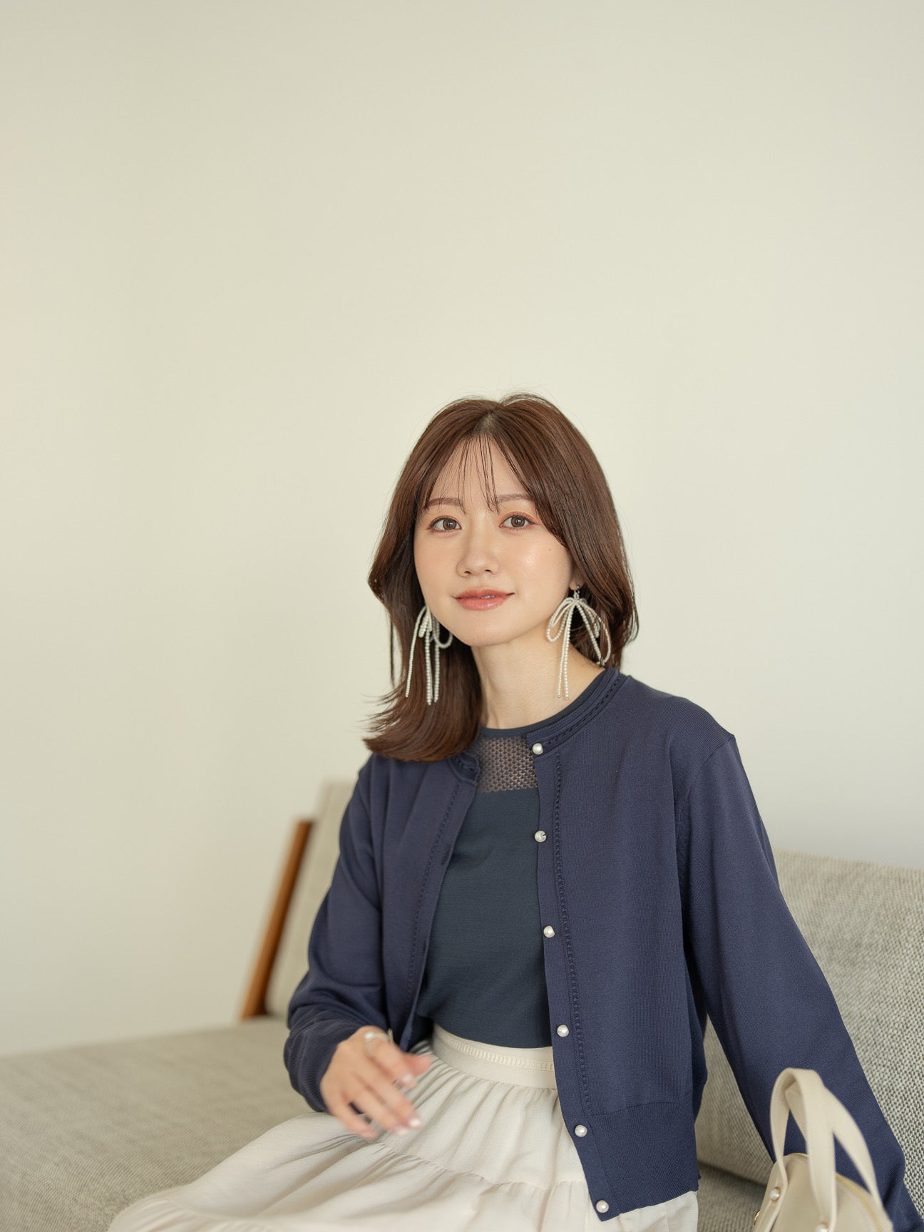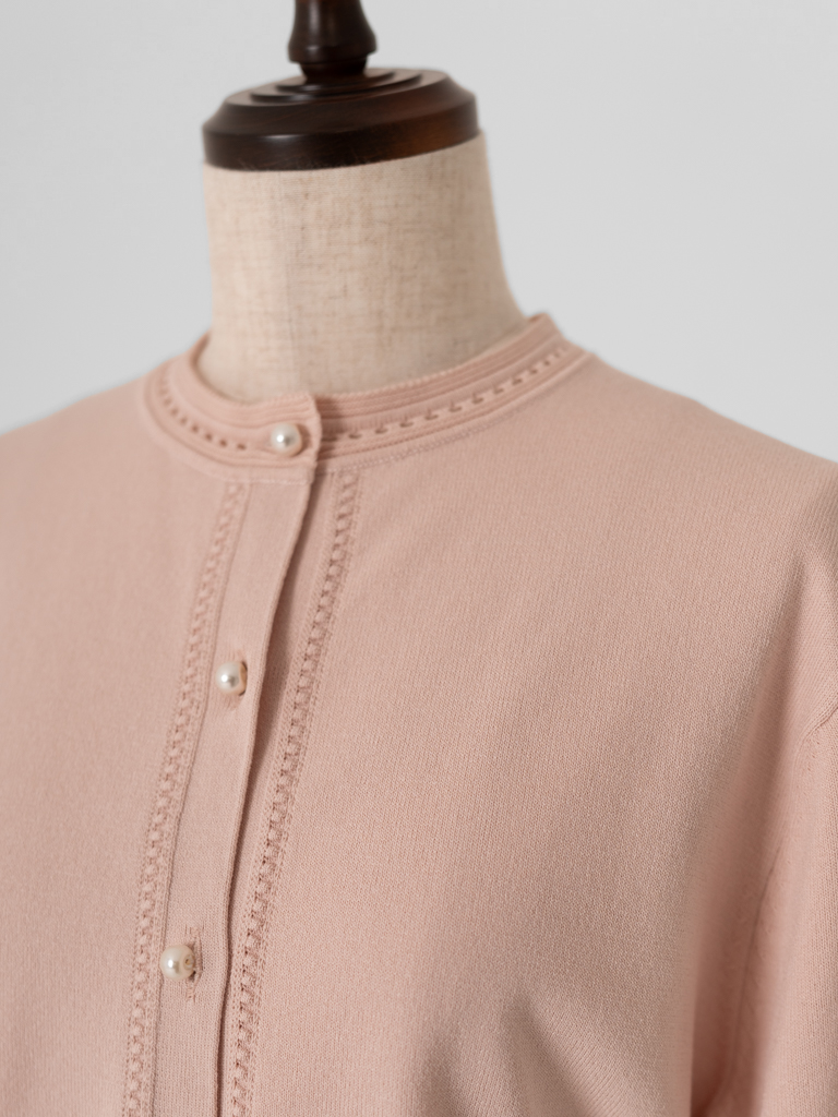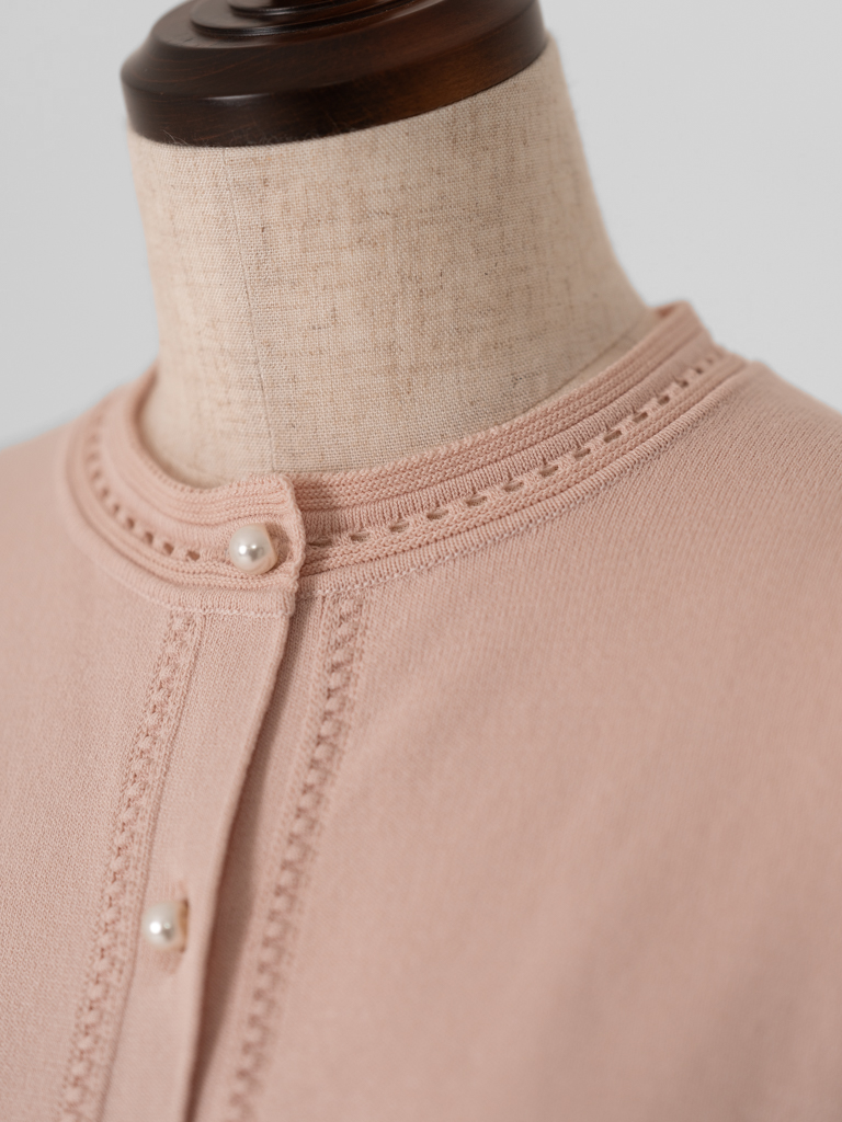 ブランドシンボルである“はしご”のディテールを取り入れた、Maison Echelleの新定番カーディガン。
