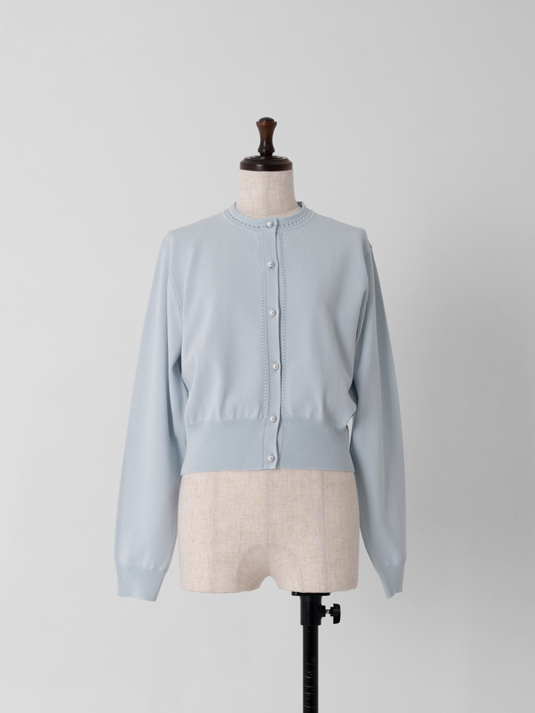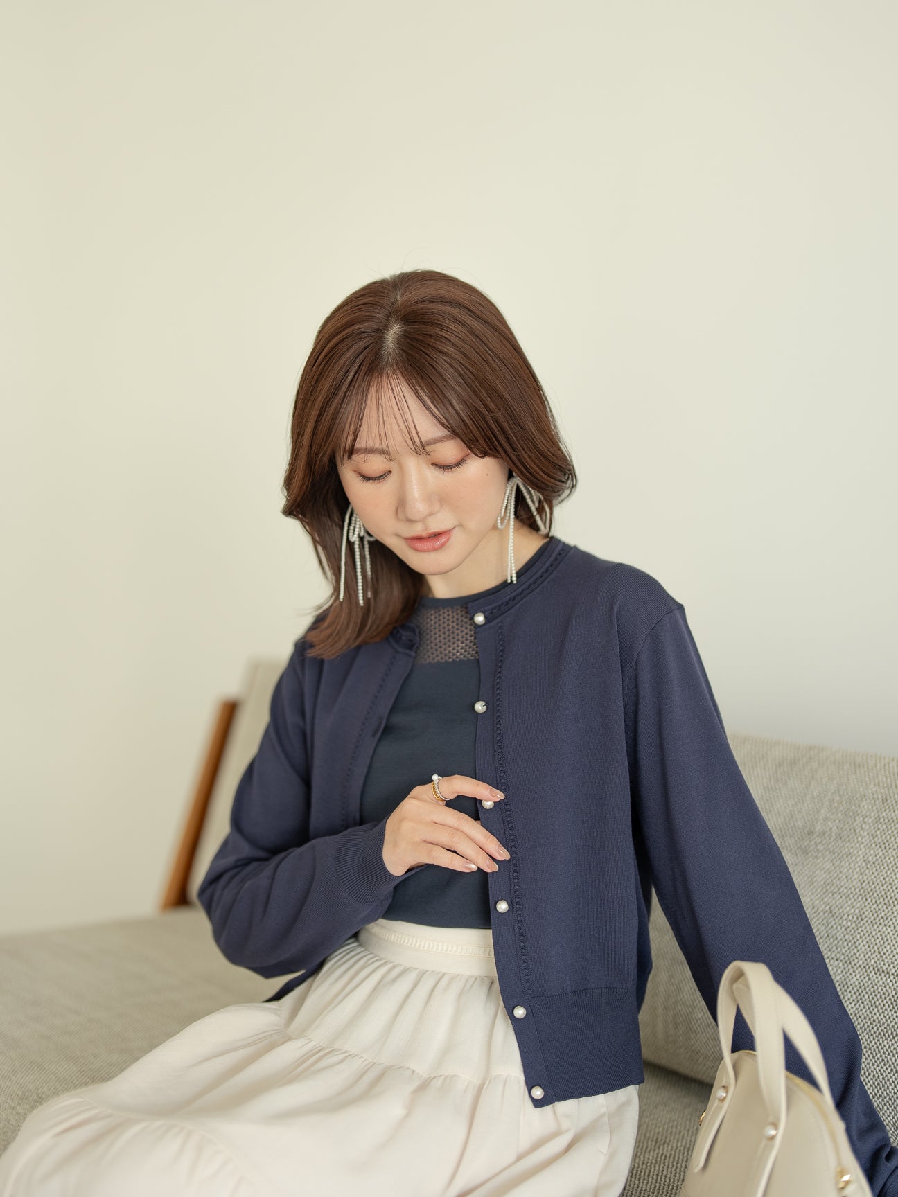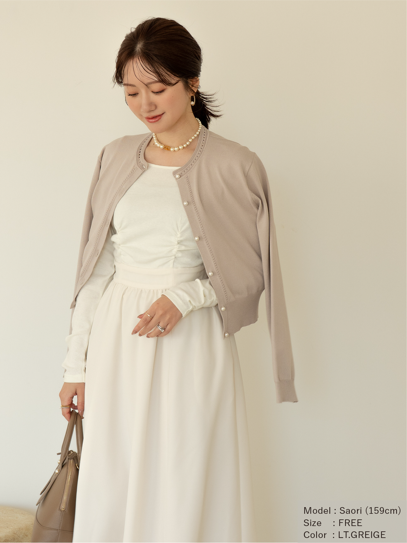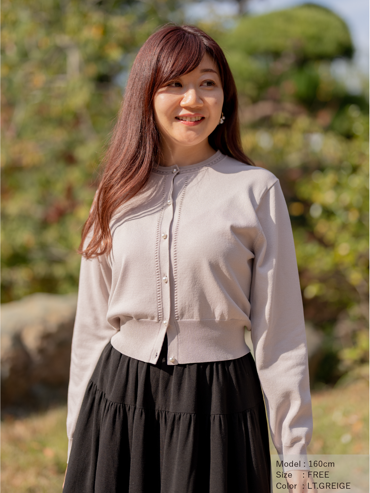ブランドシンボルである“はしご”のディテールを取り入れた、Maison Echelleの新定番カーディガン。