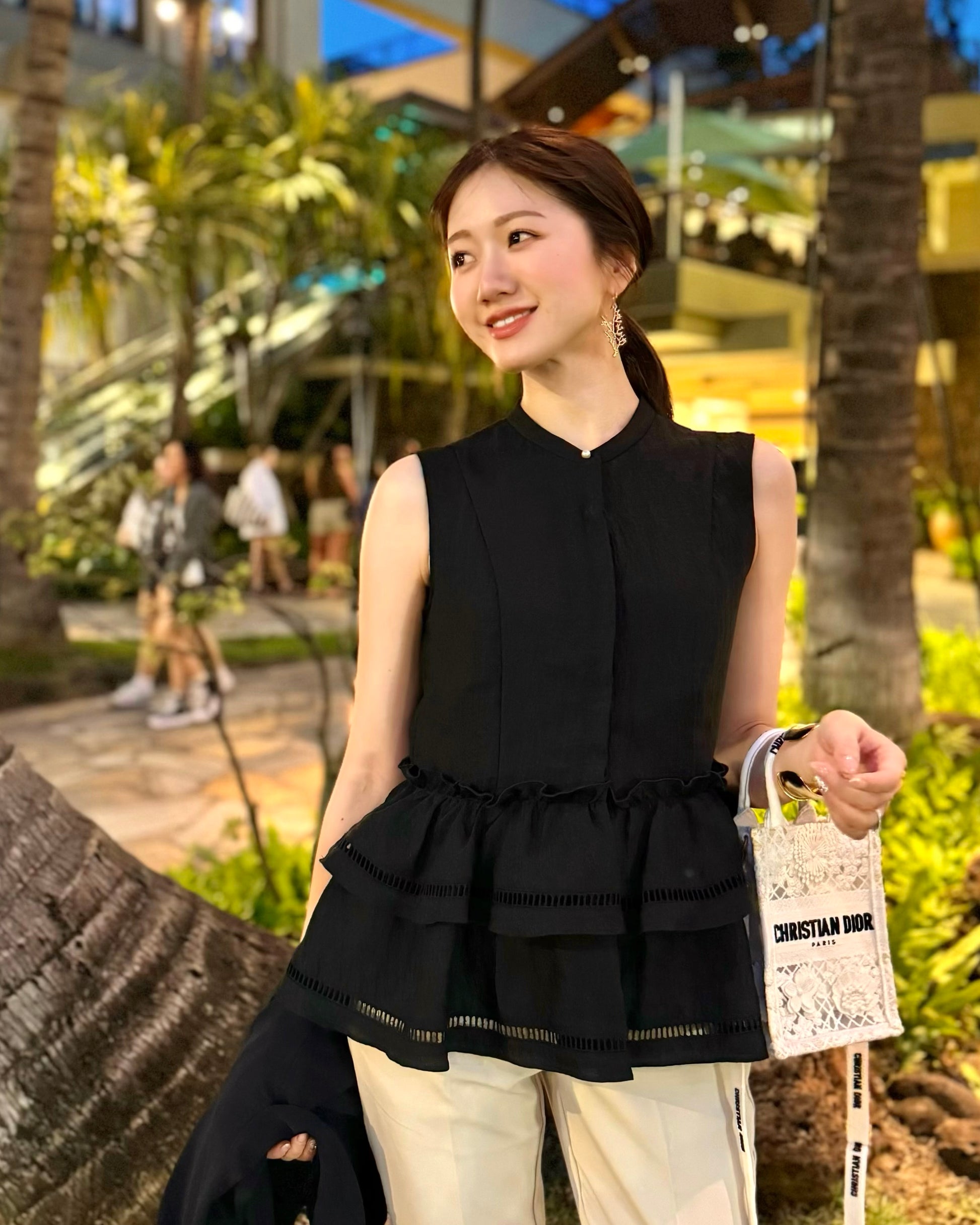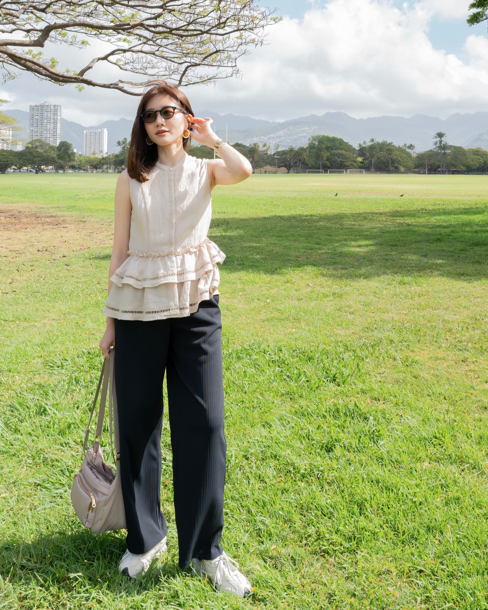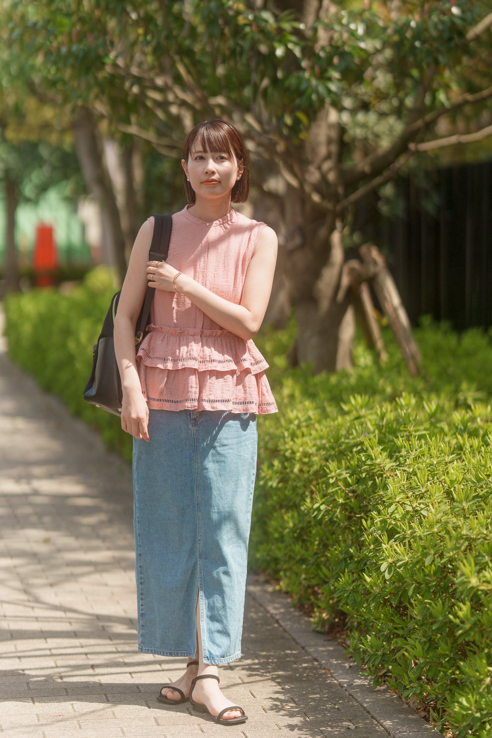 ペプラムシルエットのため、パンツ合わせもおすすめです。