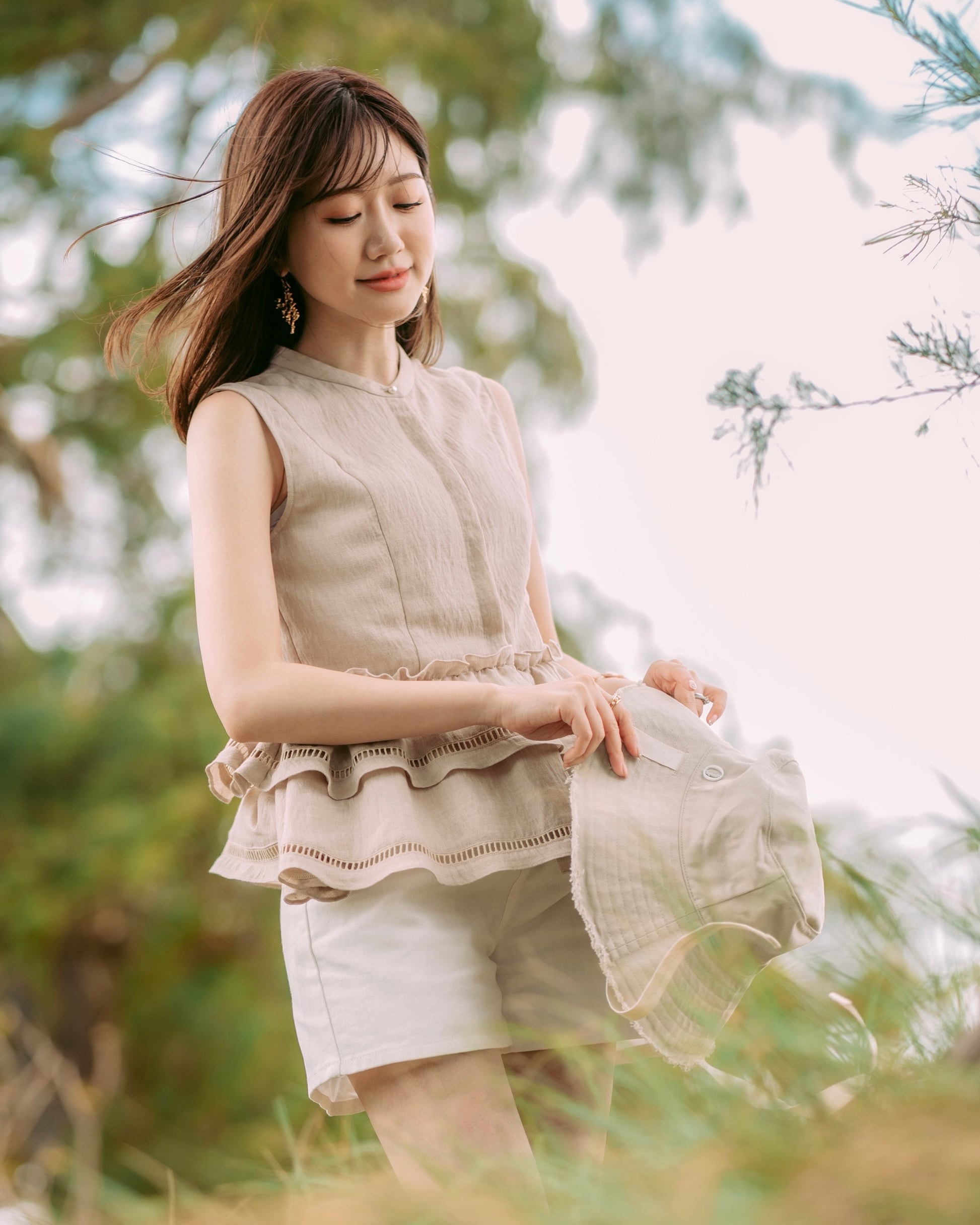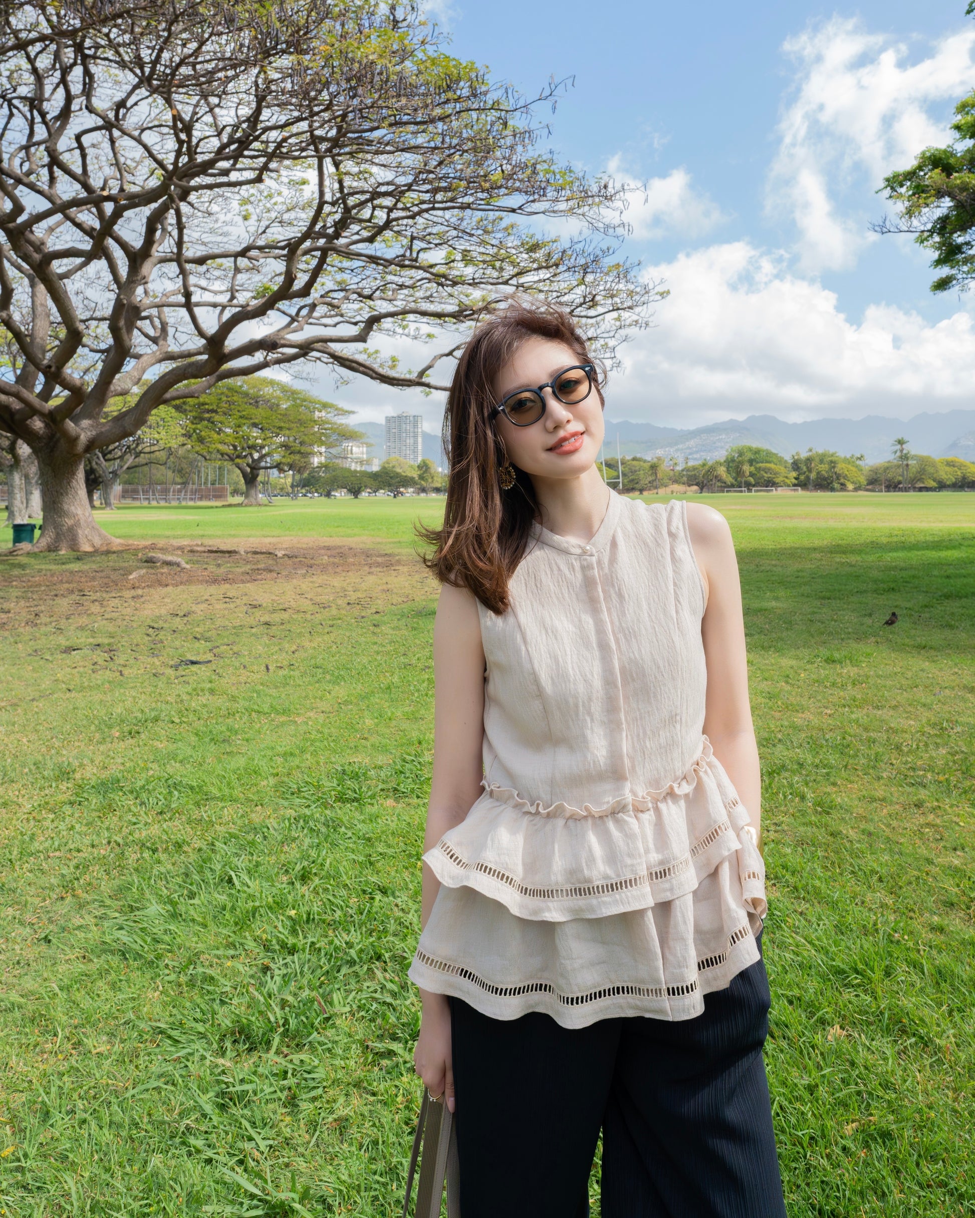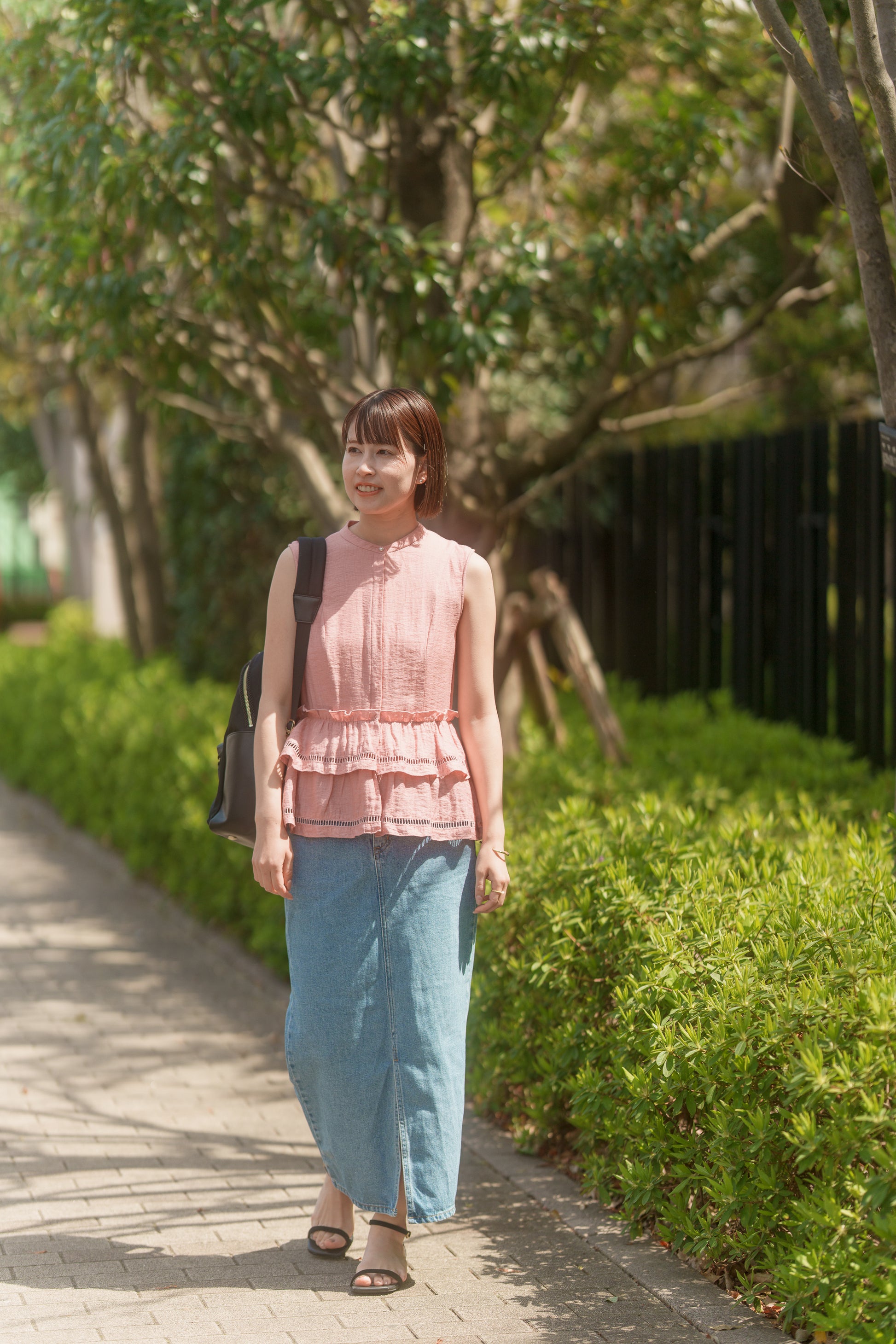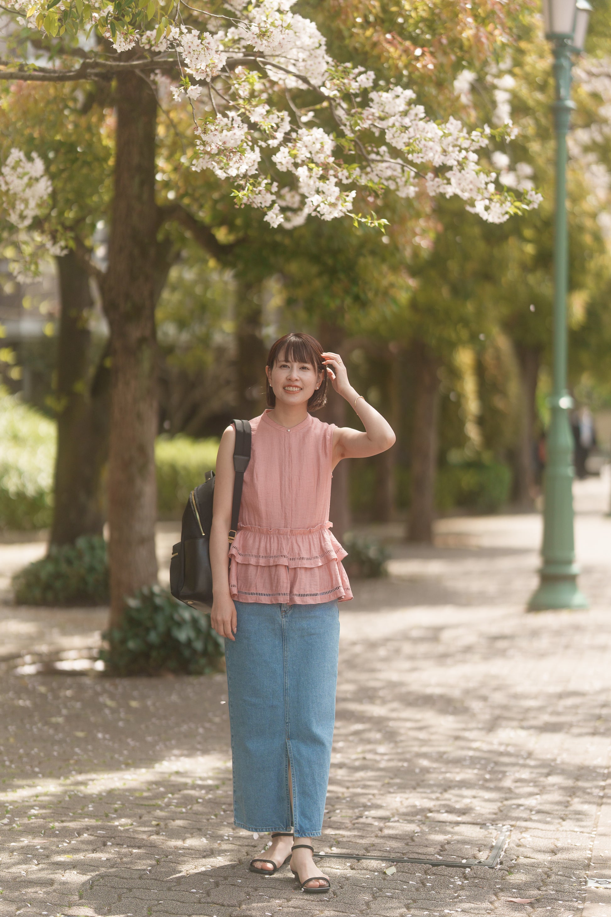 ペプラムシルエットのため、パンツ合わせもおすすめです。