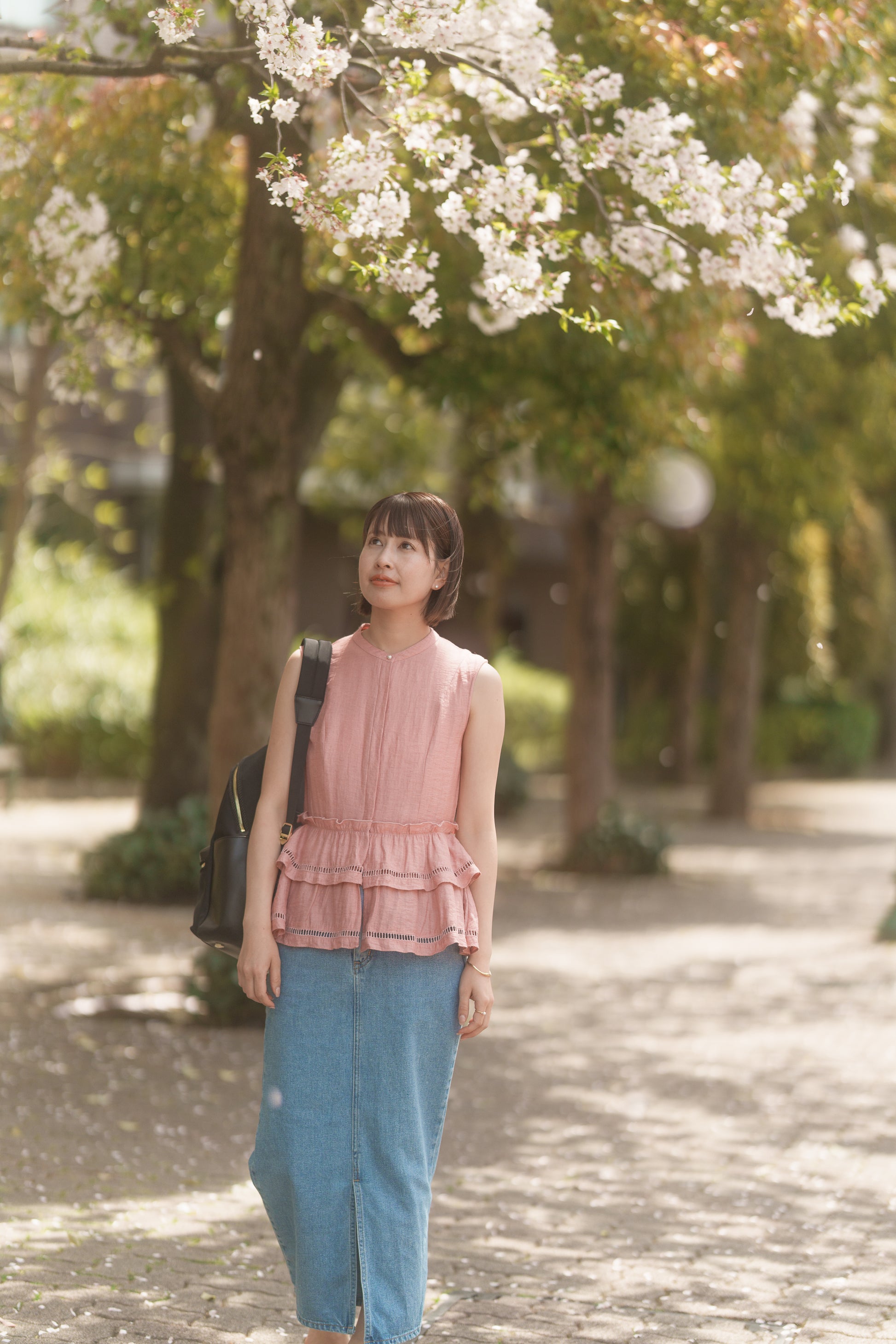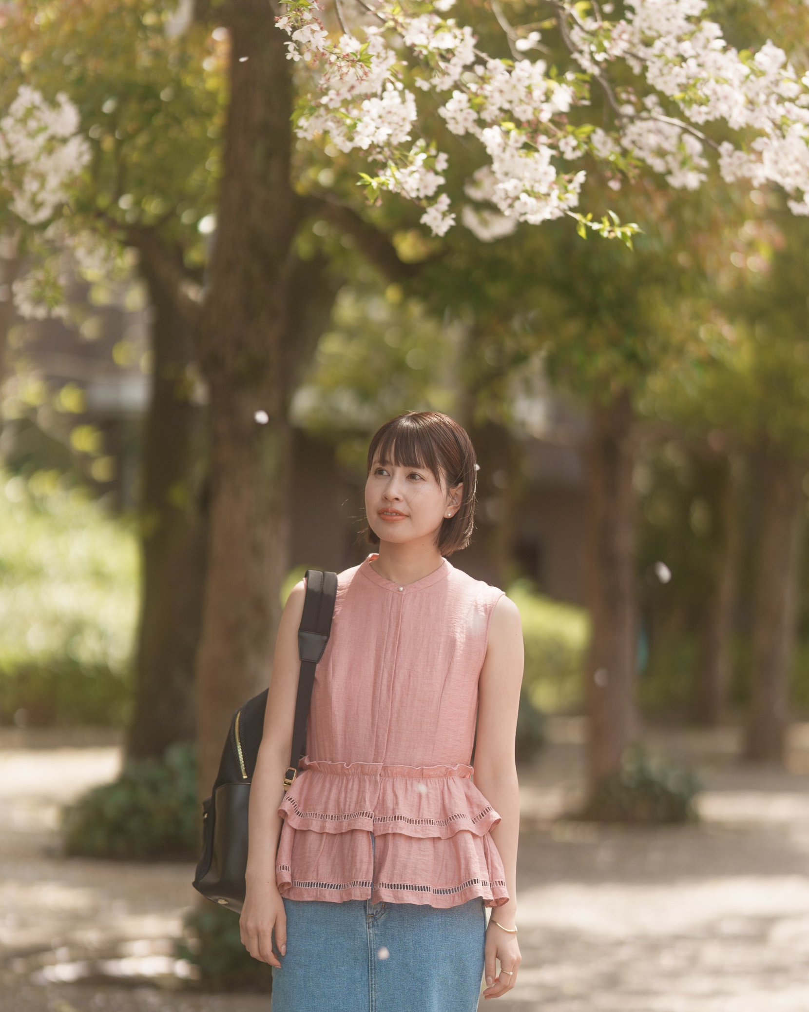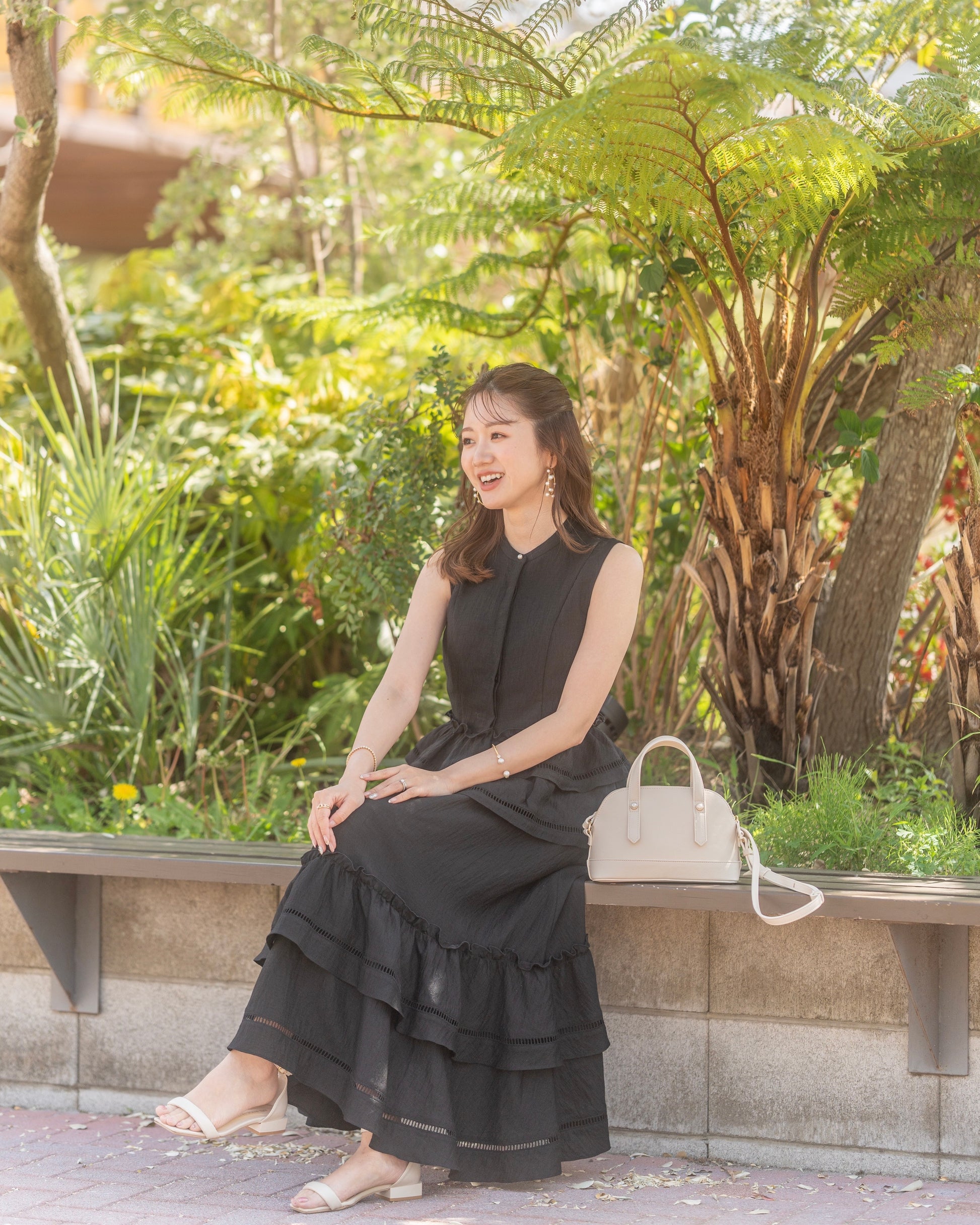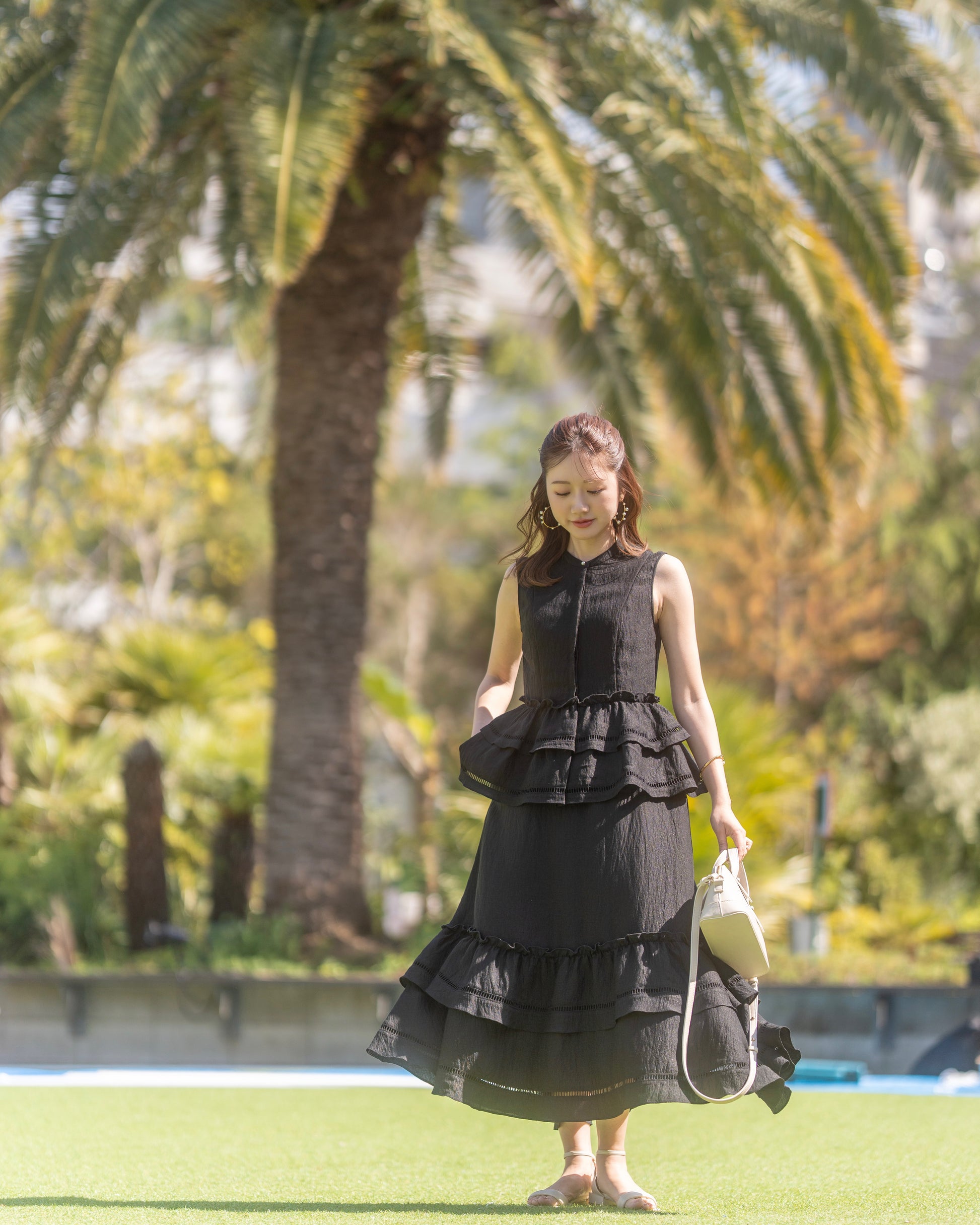 甘いディテールながら、上品な印象になるシルエットで、着る人を選びません。