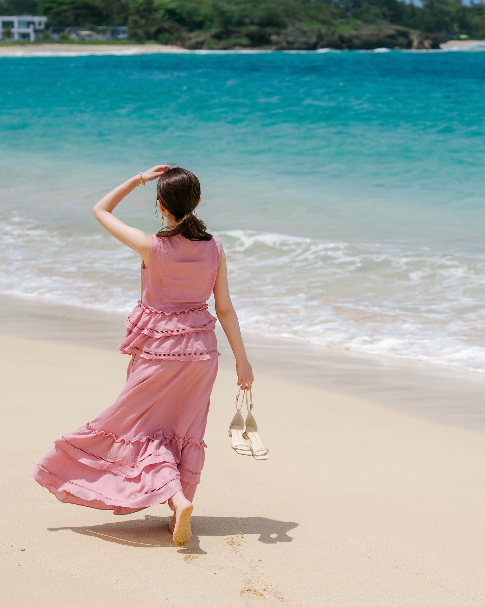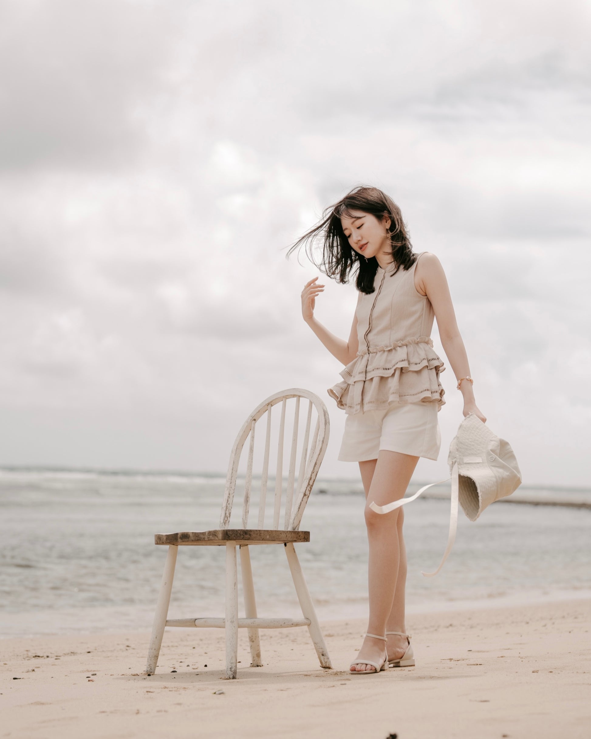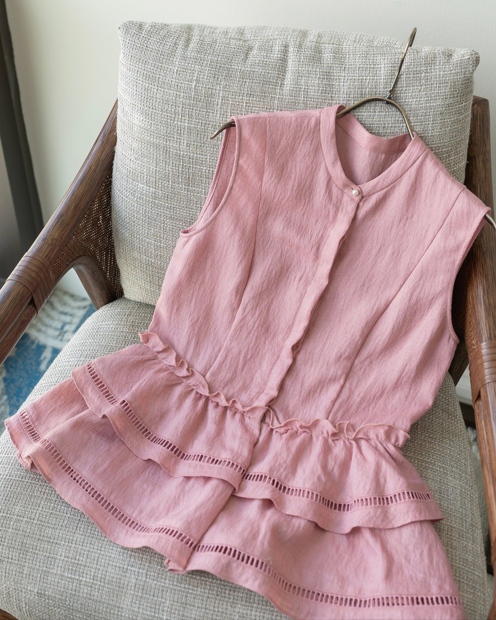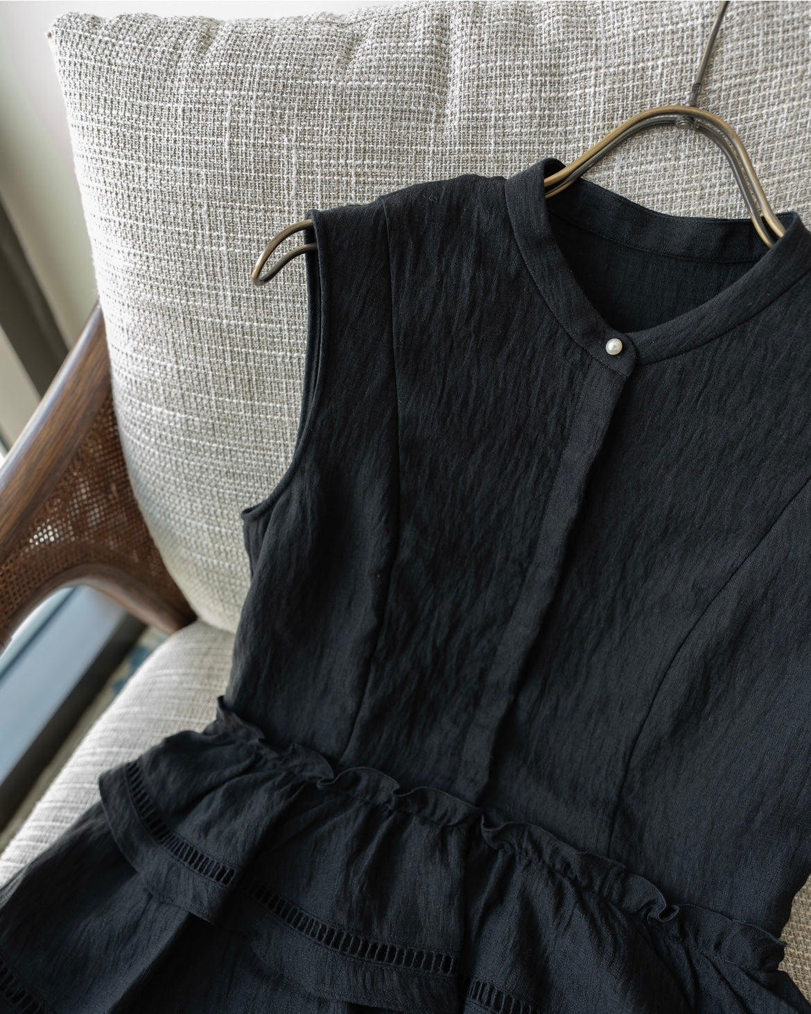 甘いディテールながら、上品な印象になるシルエットで、着る人を選びません。