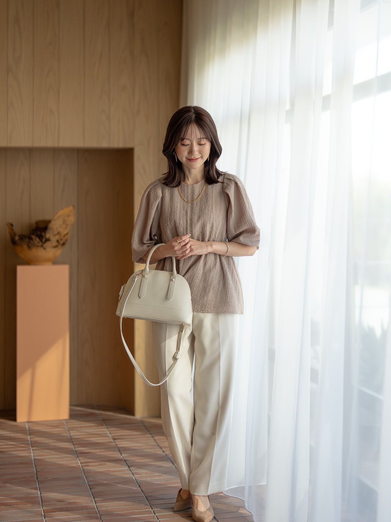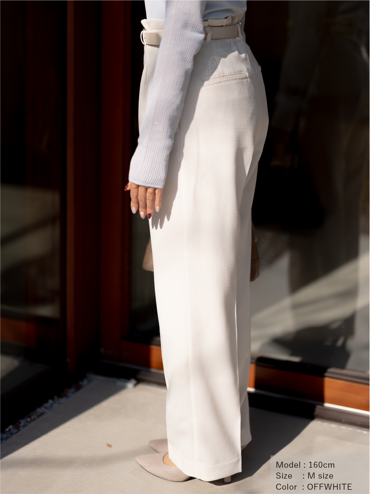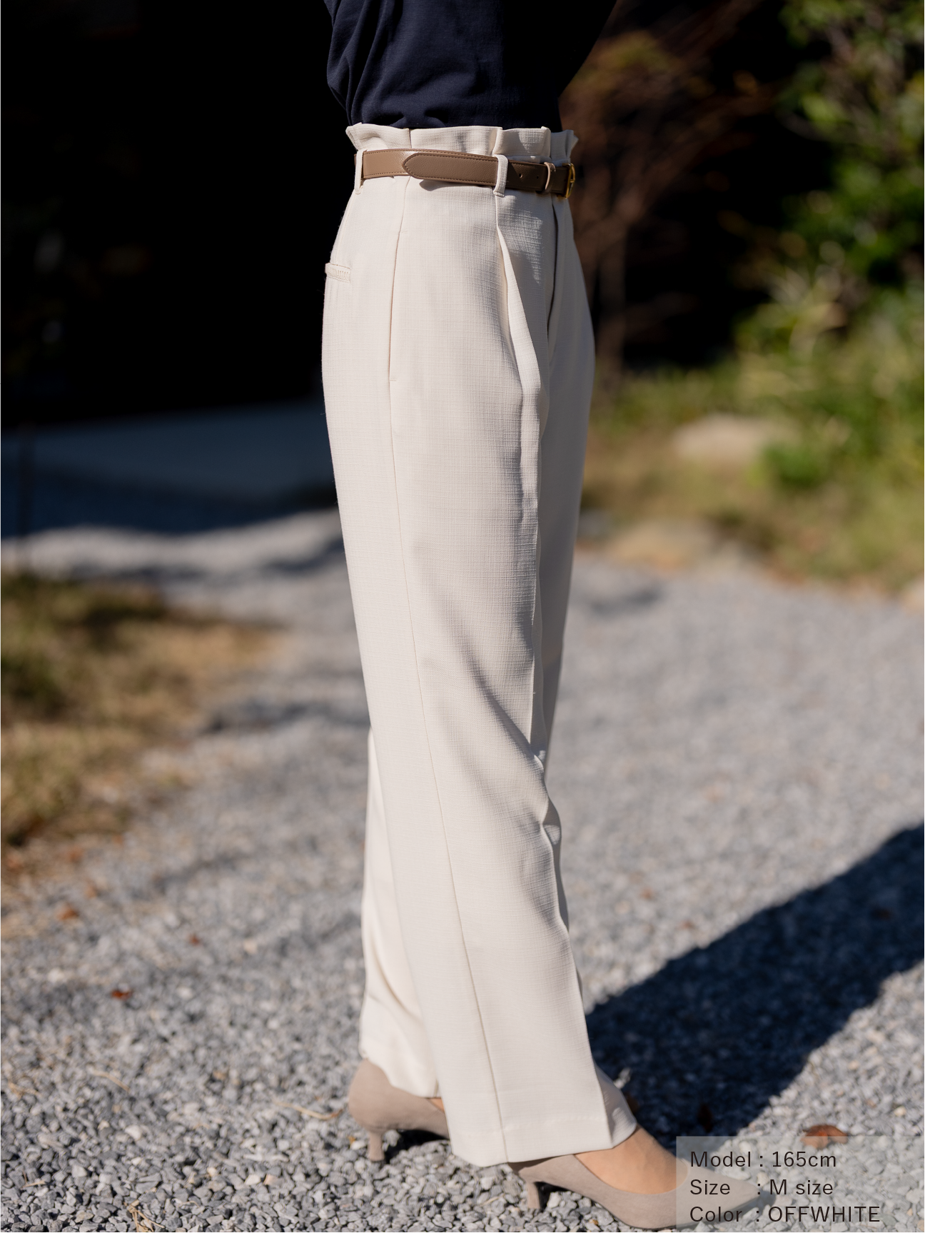 日常のさまざまなシーンで頼れる、上品で扱いやすいセミワイドパンツです。