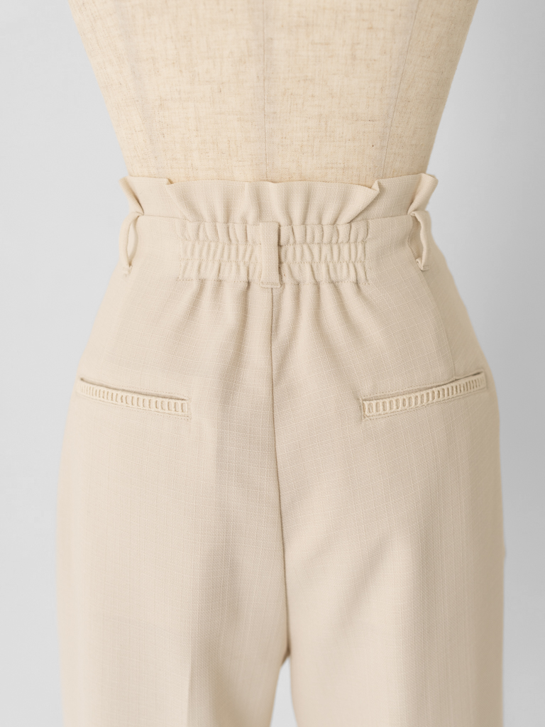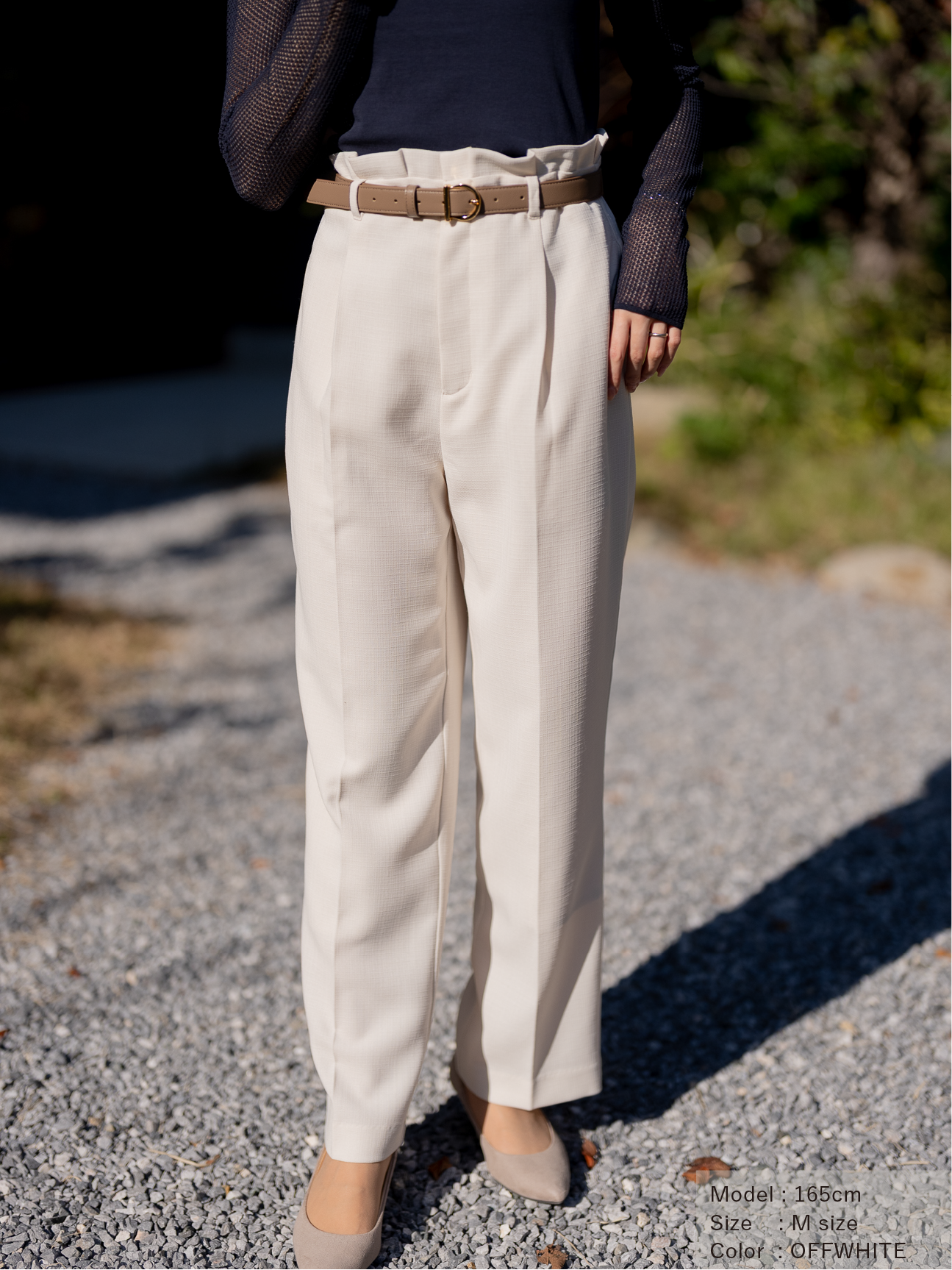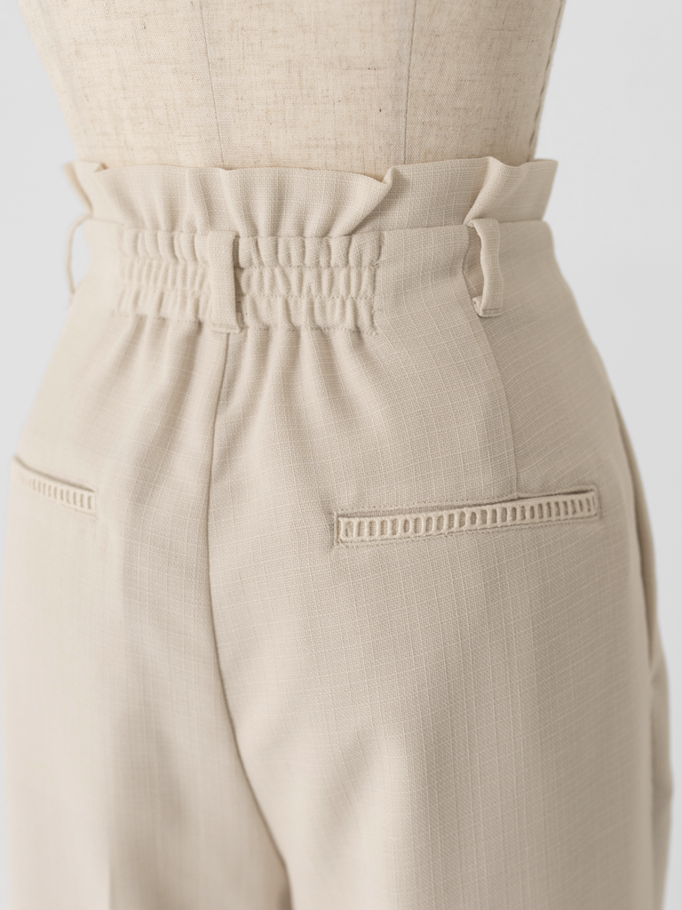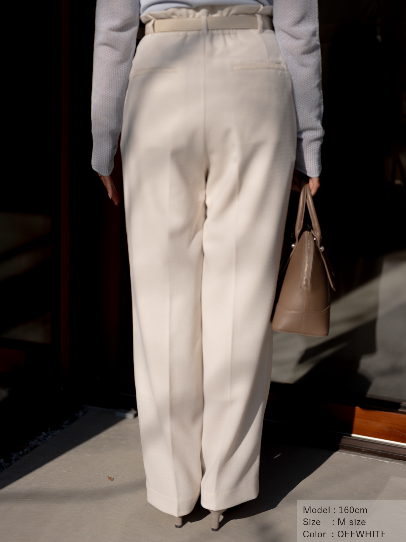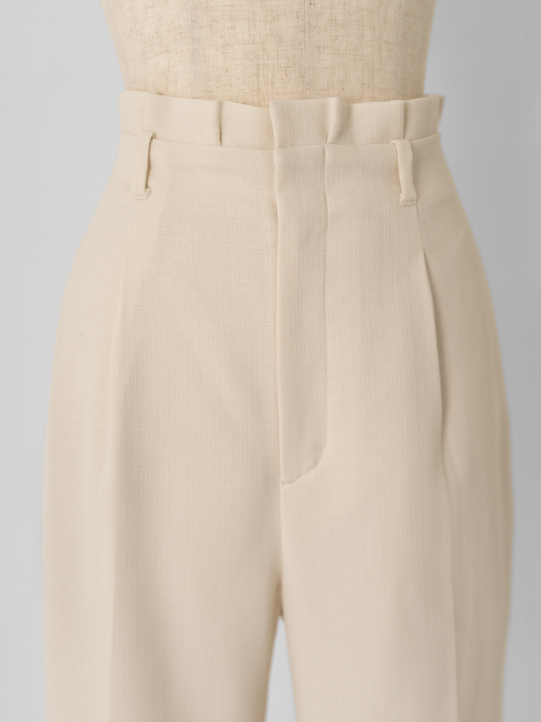 ややハイウエストのデザインに、センタープレスが上品な印象を添え、脚をまっすぐきれいに見せてくれます。
