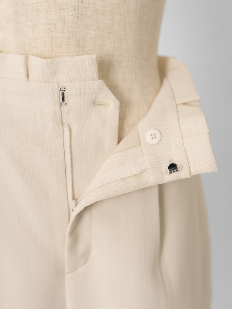 ベーシックにたくさん着回したいパンツだからこそ、お客様のアンケート結果をもとに、素材やディテール、サイズ感まで丁寧に検討して仕上げた一枚です。